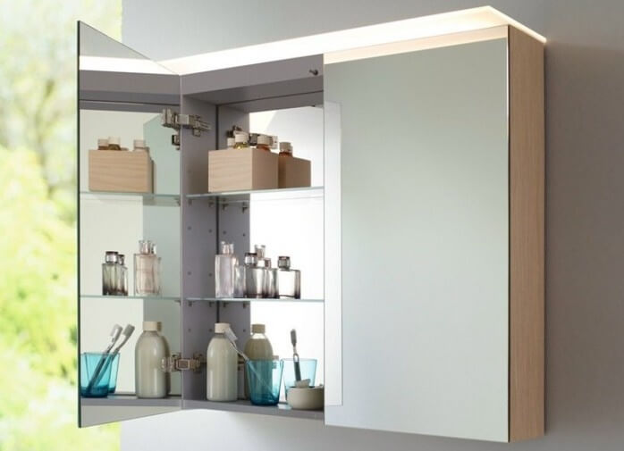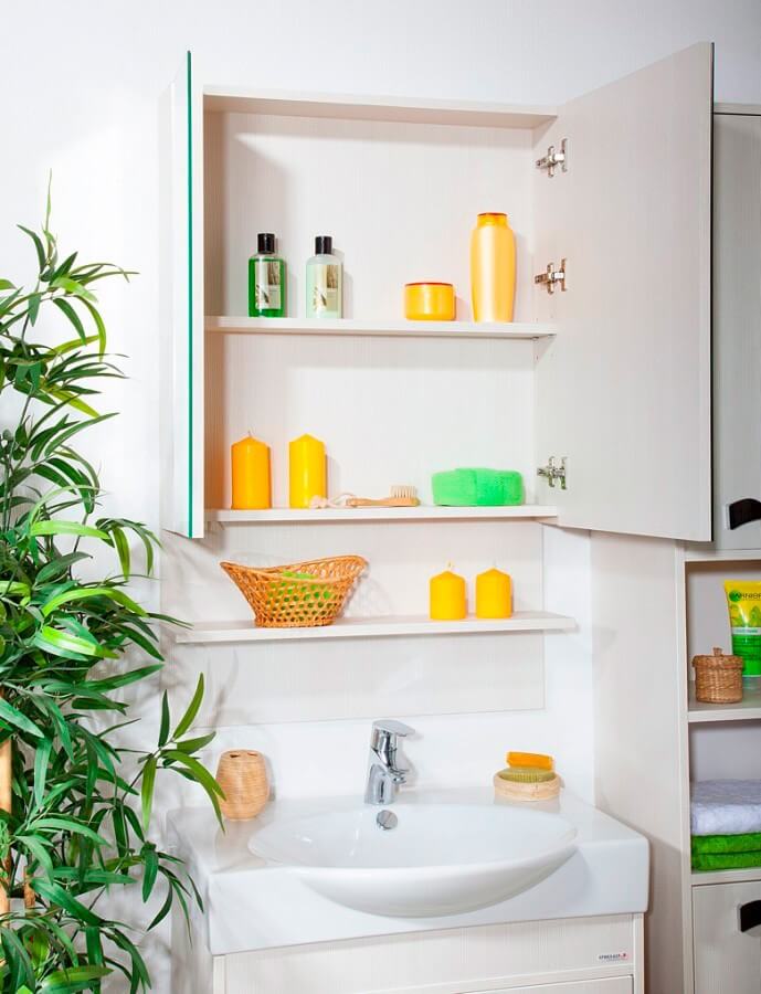 Στην πρώτη έκδοση, όλα τα αντικείμενα κρύβονται πίσω από τις πόρτες.Αυτό είναι το πιο κοινό μοντέλο, καθώς προστατεύει το περιεχόμενο από εξωτερικές επιρροές. Επιπλέον, η γενική παραγγελία θα διατηρηθεί στο μπάνιο.