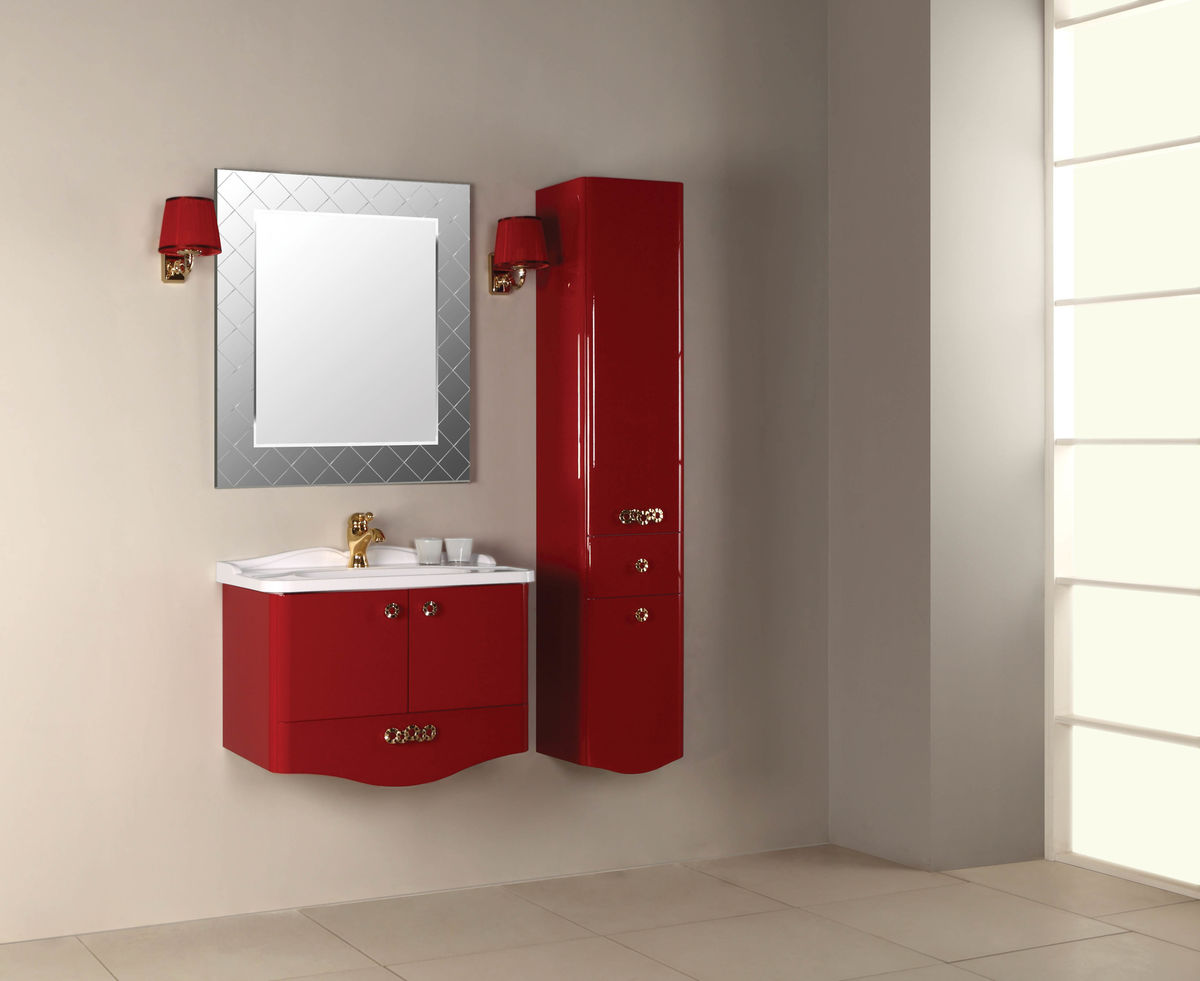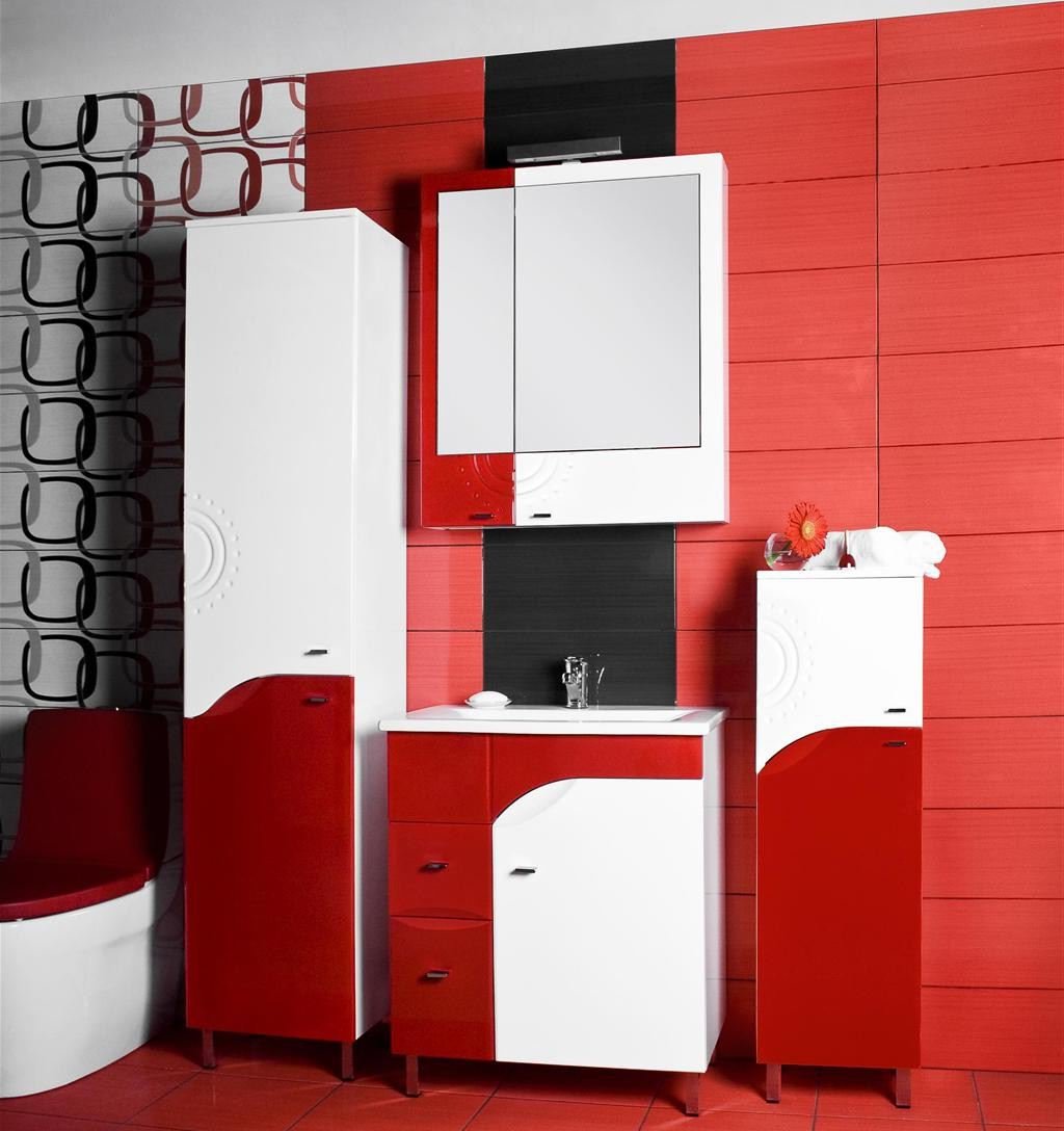 Συχνά, τα έπιπλα μπάνιου γίνονται σε έντονα χρώματα. Αυτά τα χρώματα είναι πιο κατάλληλα για μικρά δωμάτια. Καλύτερο αν το χρώμα είναι σε αρμονία με το σχέδιο του μπάνιου.