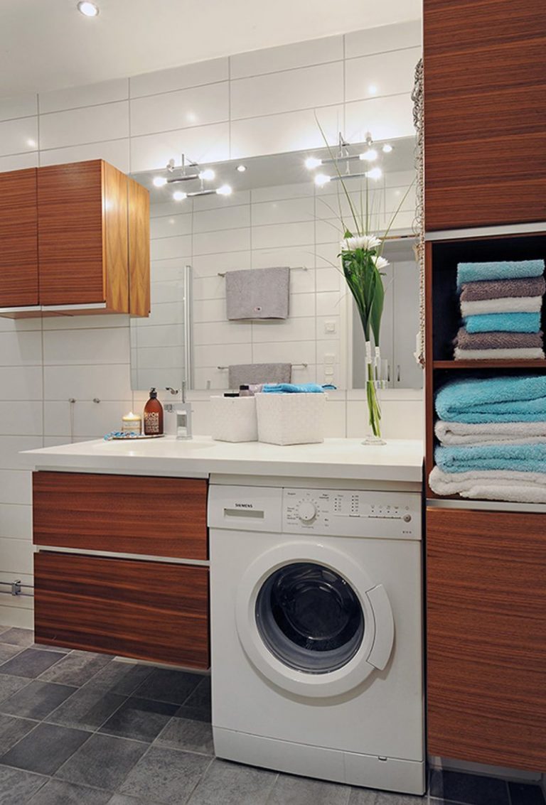 Η δεύτερη επιλογή είναι προτιμότερη για ένα μεγάλο μπάνιο, πιο συχνά ως διακοσμητικό στοιχείο. Το συνδυασμένο ντουλάπι είναι το καταλληλότερο μοντέλο για εύκολη αποθήκευση και αποθήκευση.