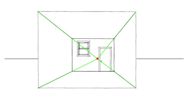 - First, draw a square or rectangle. This is the outline of the front wall. Next, select one point, called the vanishing point. It should be noted slightly below the middle of the square, to the left, to the right of the center. All subsequent lines directed deep into the sheet of paper should tend to this point. So symmetry, uniformity is maintained.