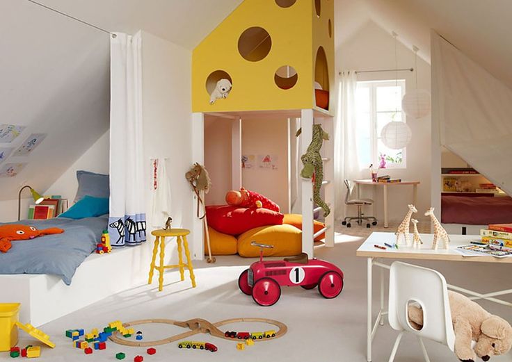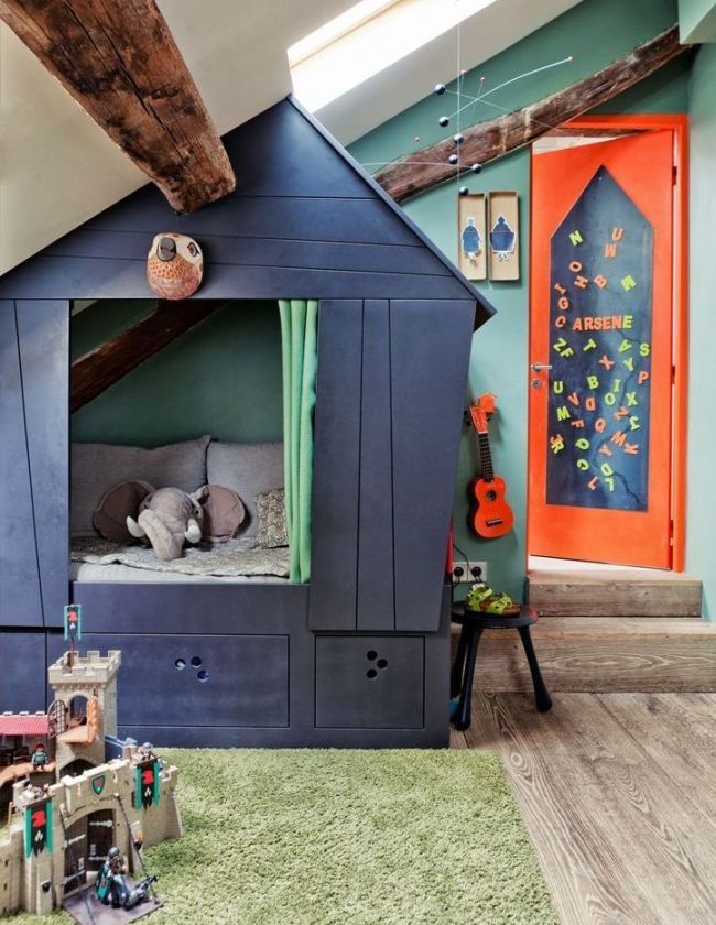 For lack of a separate room, a place for games can be arranged directly in the children's bedroom