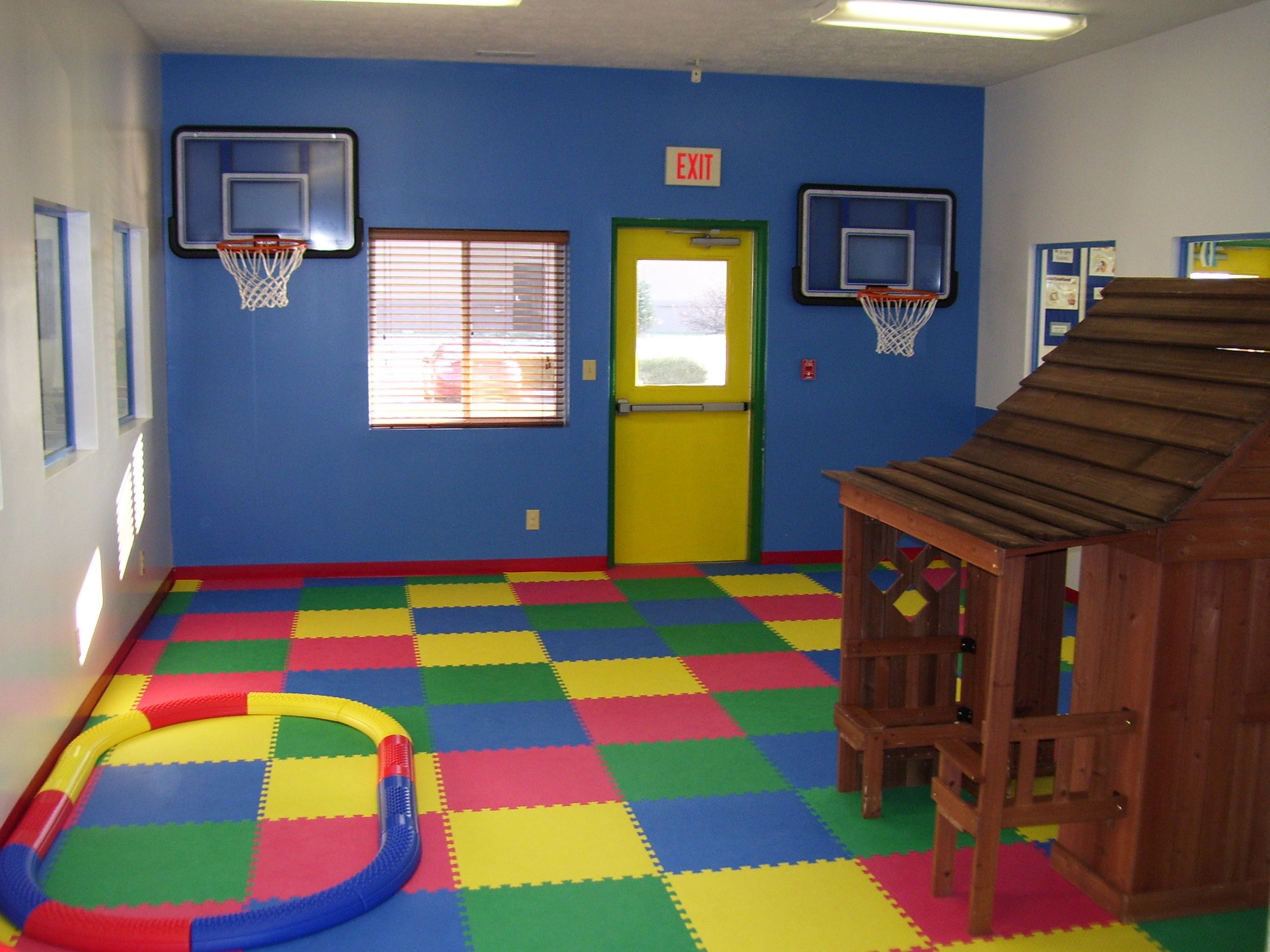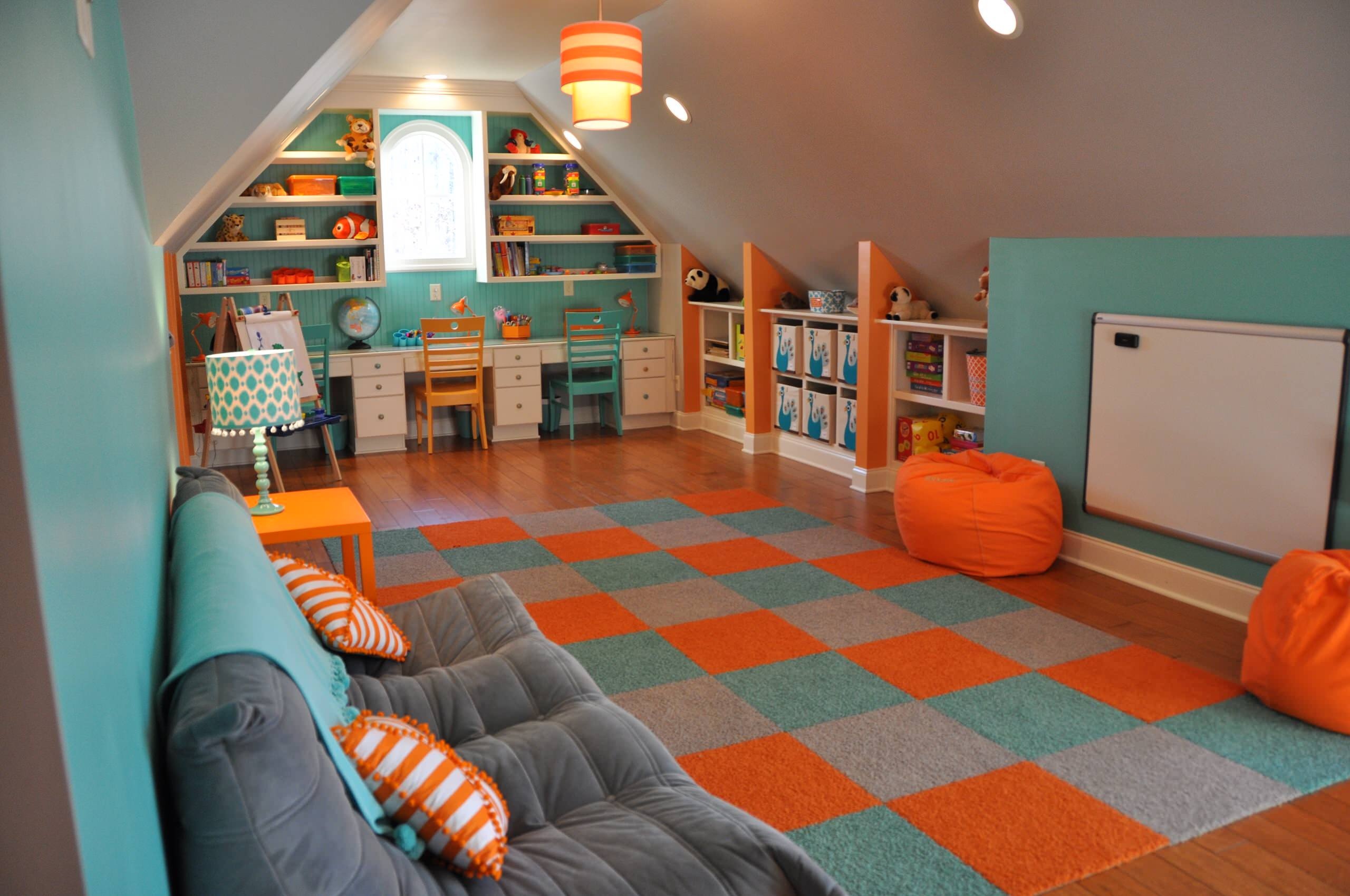 A children's carpet with a themed pattern is perfect for flooring in the game room.