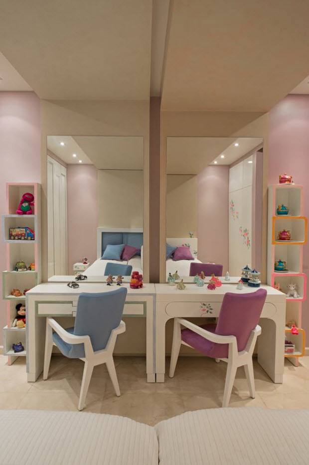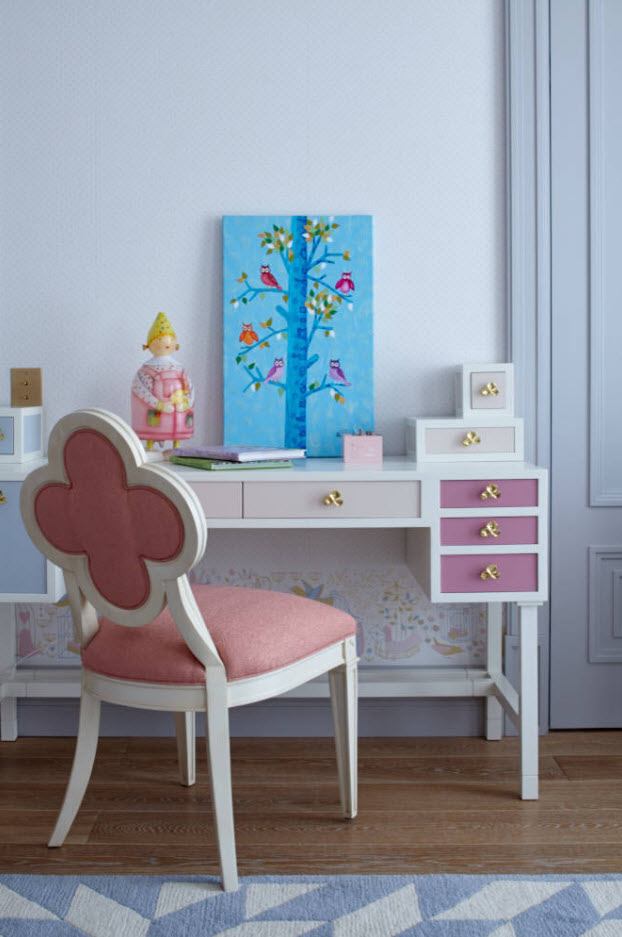 Pink or lilac color is a traditional choice for furniture in a girl’s room