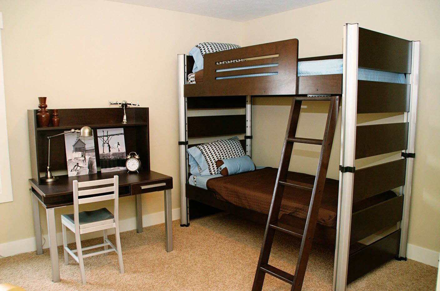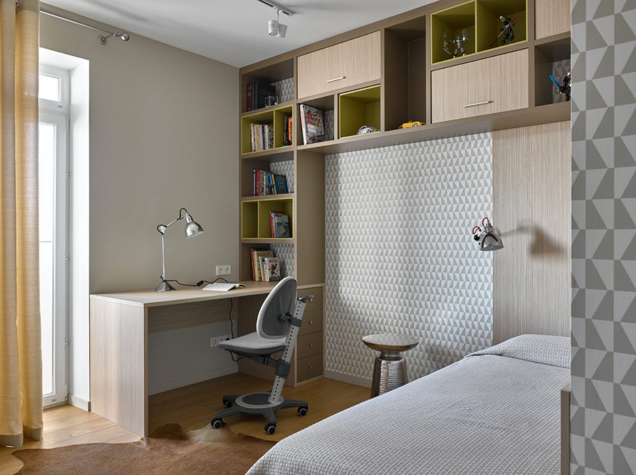 Wooden furniture in the teenagers room - the original design of the legs of the table allows you to adjust the height of the countertops