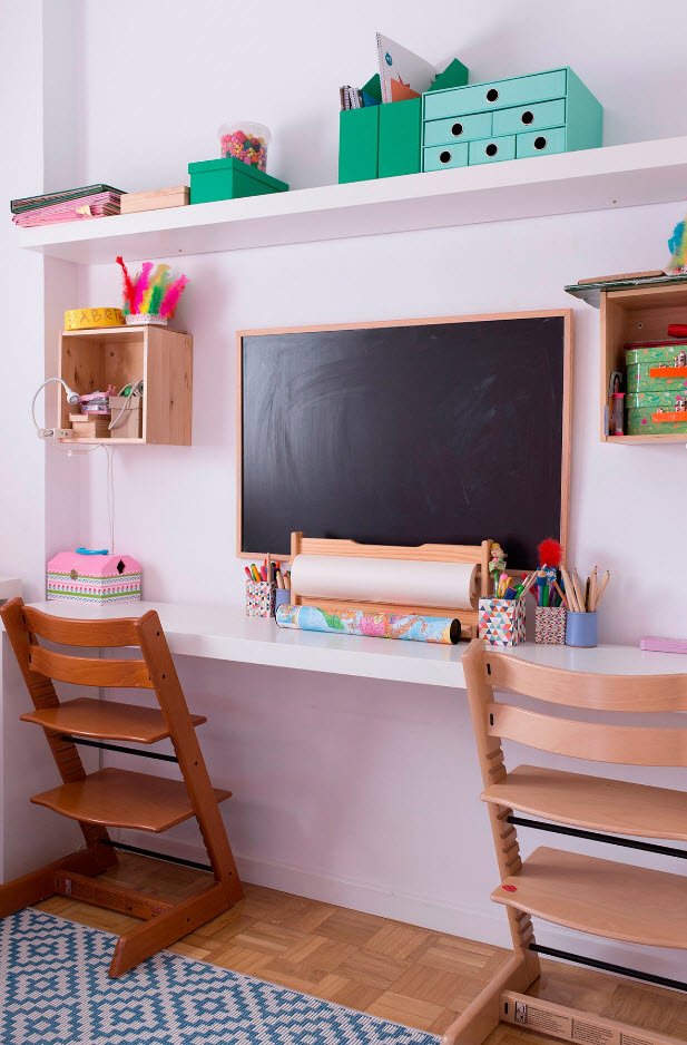 The parents of one child can only choose a children's table with a chair to the taste of the baby. Moms and dads of same-sex children also have no difficulty in choosing. A large selection of double tables and desks, designed in the same style, allows you to select them without difficulty. Particularly interesting are models with separate adjustable countertops and school desks-transformers.