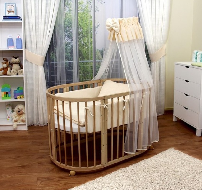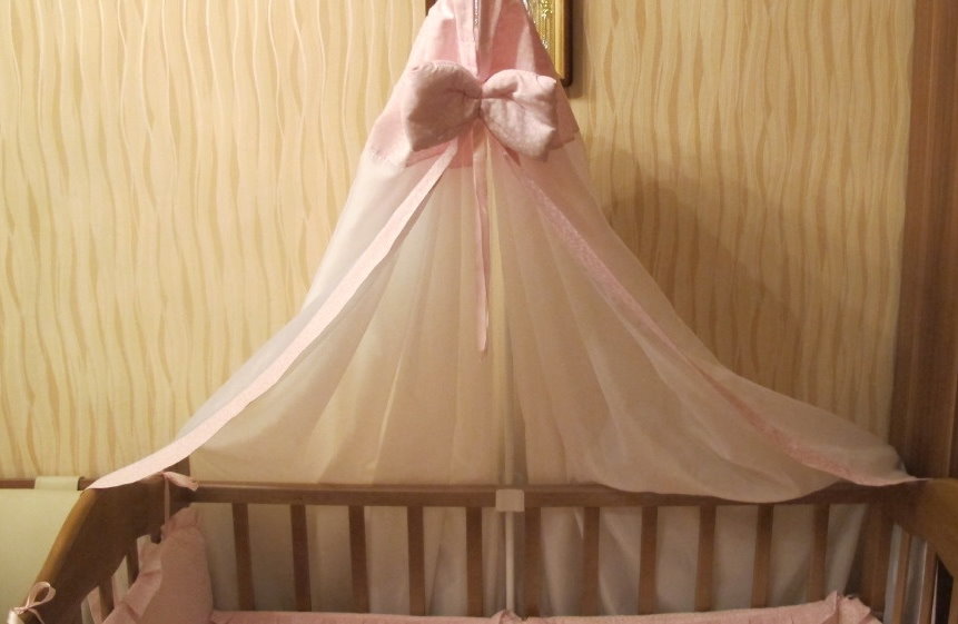 Initially, the canopy for the crib was made so that the child had the sensation of a cocoon, so that he felt protected, as in his mother’s tummy. And in order not to frighten the child with a design that suddenly fell on him, you need to firmly and correctly fix the canopy on the crib.