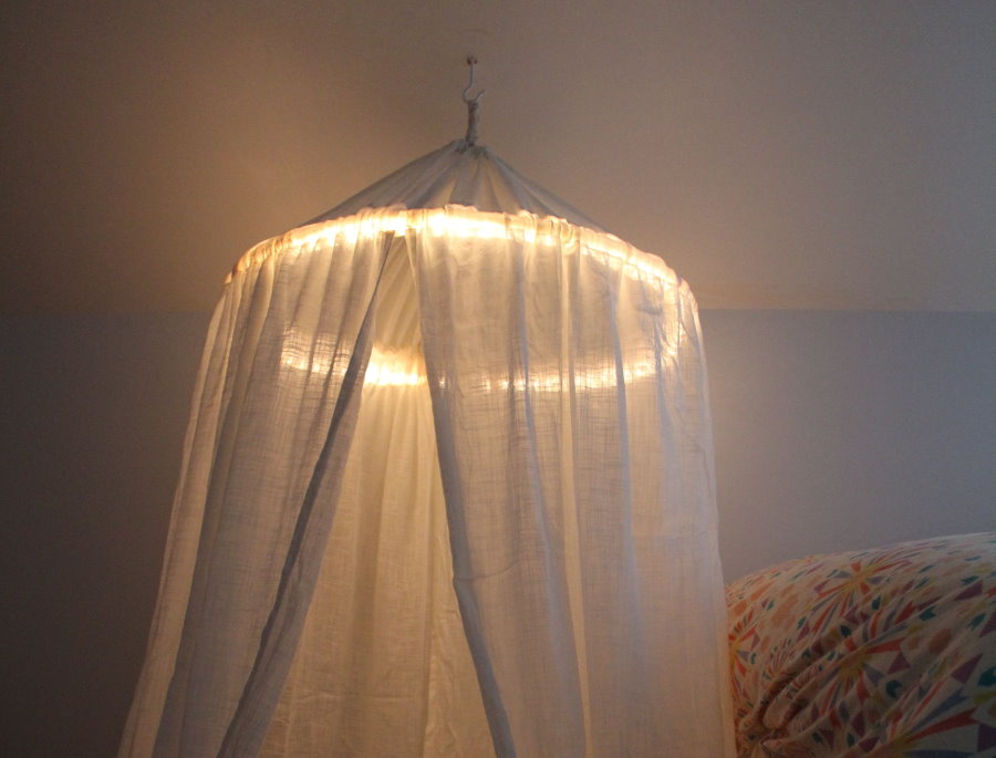 This canopy has a number of advantages over the ceiling and frame, it can be easily moved around the room, adjust the height of the bar and later, when the child is older, the canopy can be used in games, for example, to create a fabulous tent.