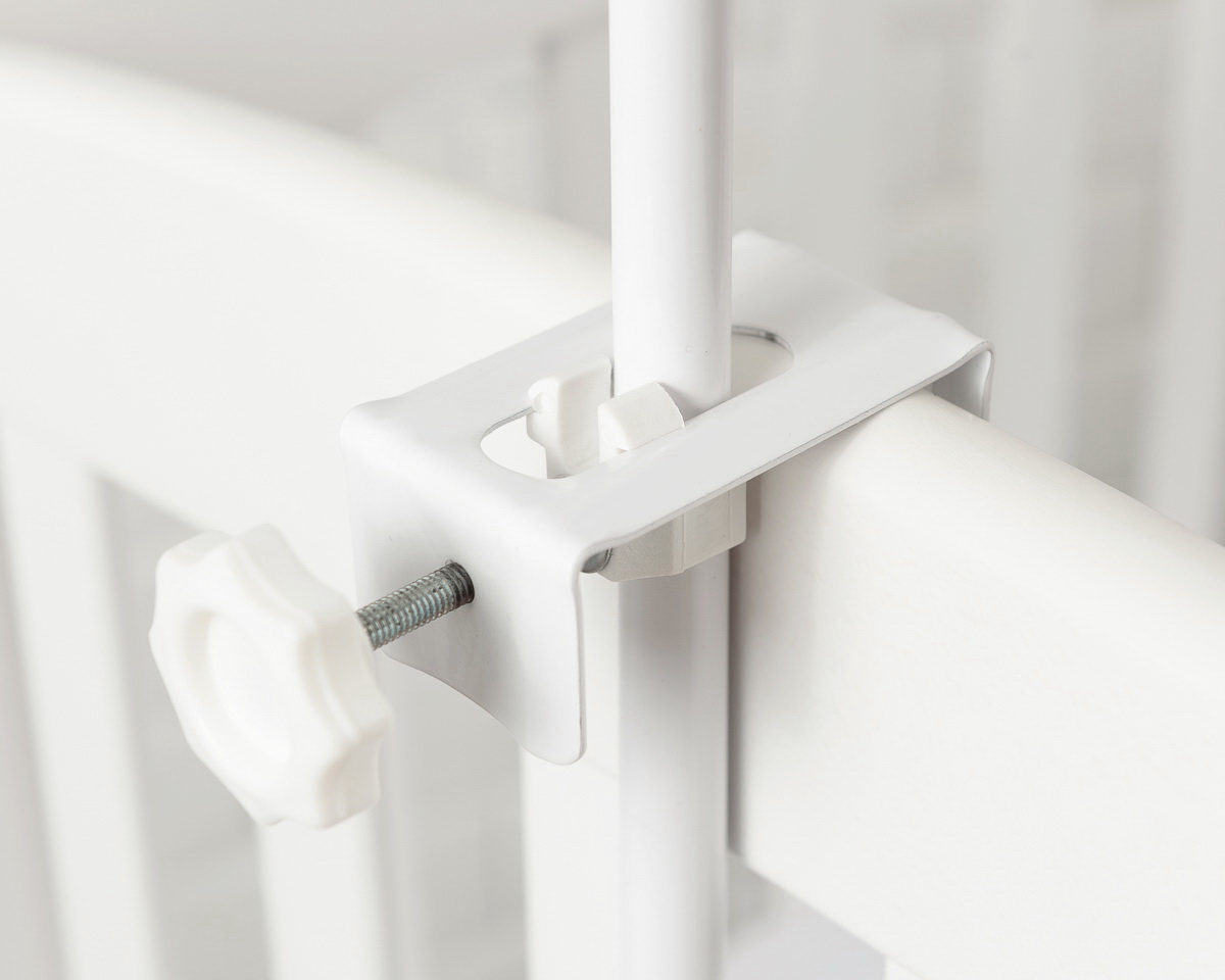 The canopy on the stand is a universal design that can be easily fixed on cribs of standard sizes