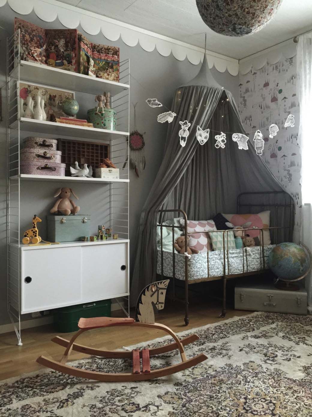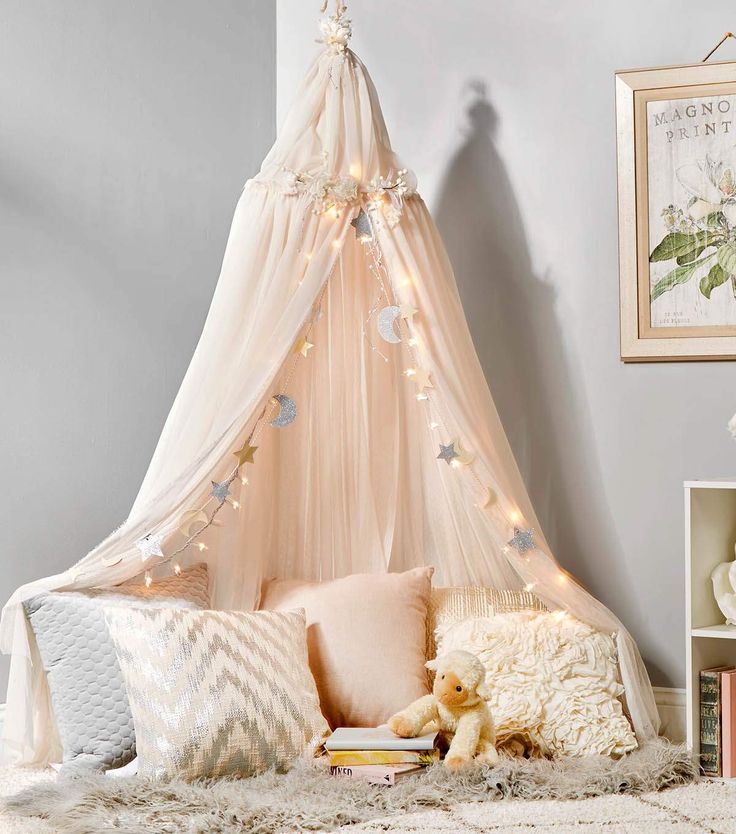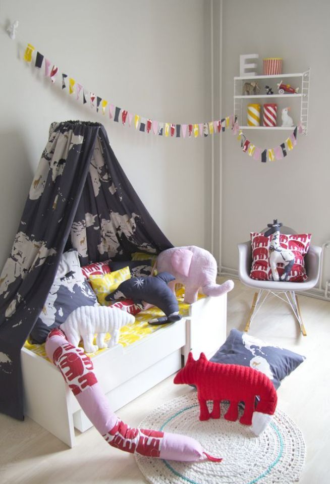 A canopy of light airy fabric allows the child to see everything that happens in the room