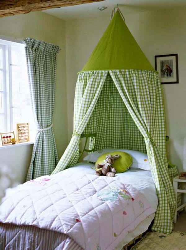Undoubtedly, the design and color of the canopy should harmoniously look in the interior of the room and be combined with curtains, walls, style and color of furniture and bed linen. If you want to use bright colors - be very careful not to overload the interior of the nursery with them - such colors as colorful drawings can excite the fragile psyche of a small child and create unnecessary eye strain.