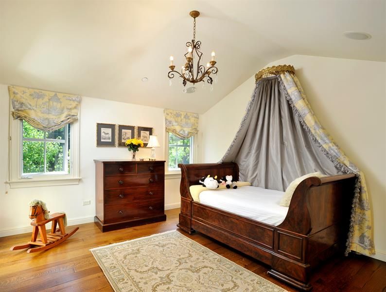 The trend of modern design of a cozy space for the baby is a four-poster bed, its main role in the children's room is interior decoration. Beautiful fabric decor will put a bright emphasis on the bed and make it the central element of the room. Visually, the canopy reduces the size of the room, so it is undesirable to use it in the interior of a small bedroom.