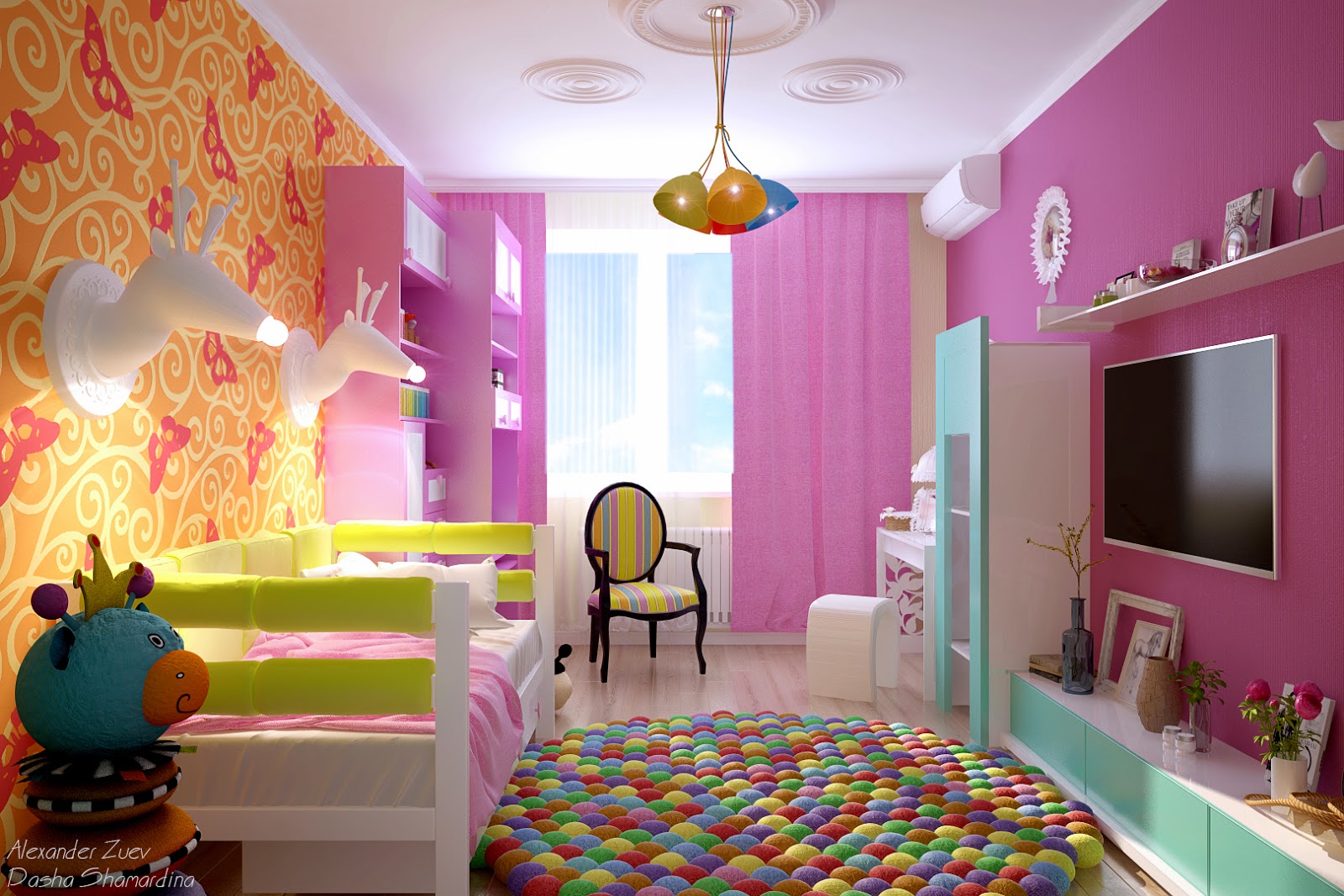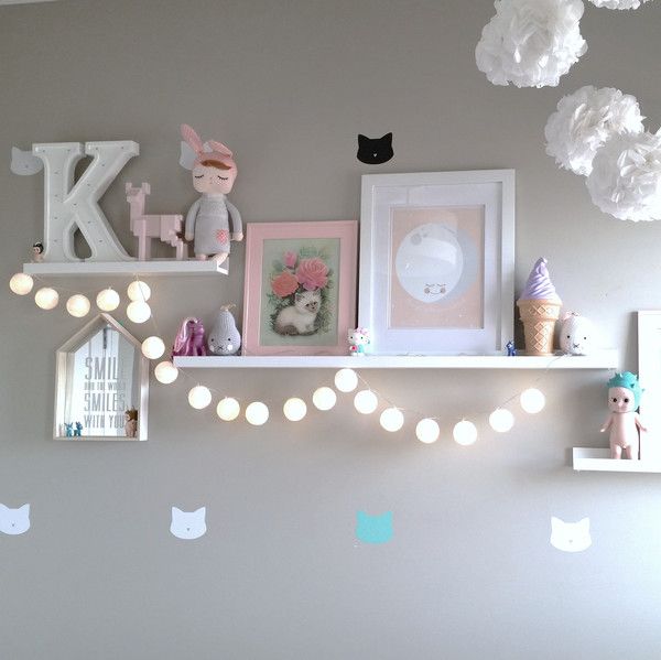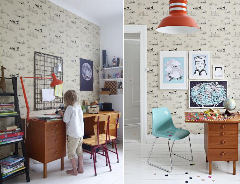 Photos of the design of a children's room with lamps