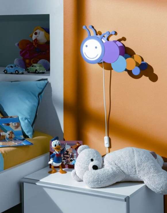 If necessary, the children's wall lamp is located in the child’s recreation area. The device illuminates the room locally, provides an average level of light. The use of children's lamps on the wall is relevant when using a TV or when there is a desire to read before going to bed. In this case, special lighting at the bedhead or desk is enough to read and not strain your eyes.
