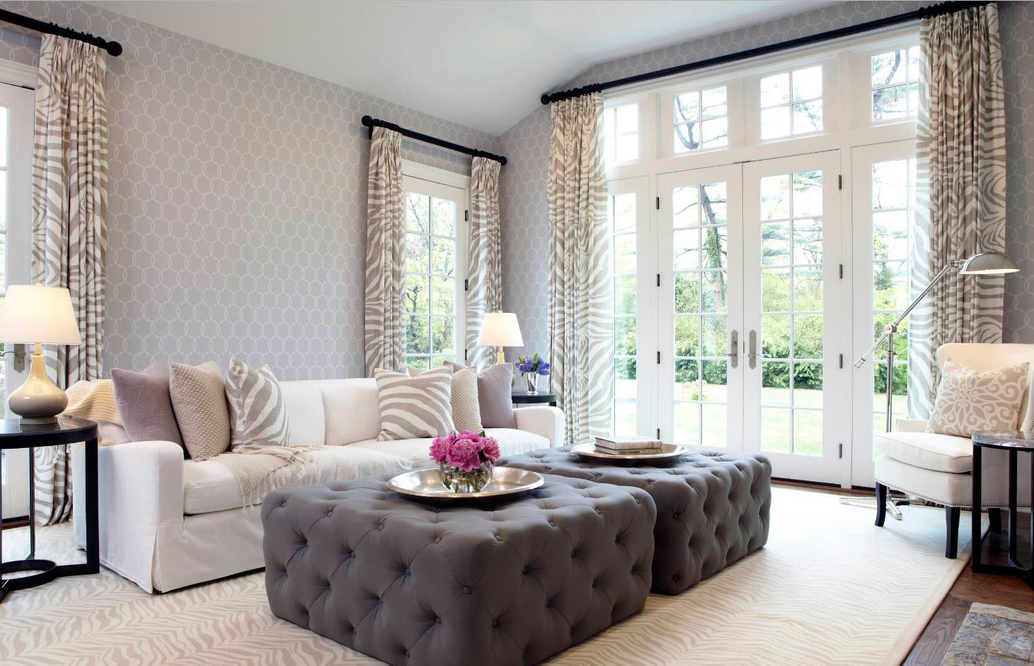 The choice of wallpaper by color and texture depends on the size and shape of the room, the number of windows and doors, the location of the room relative to the cardinal points