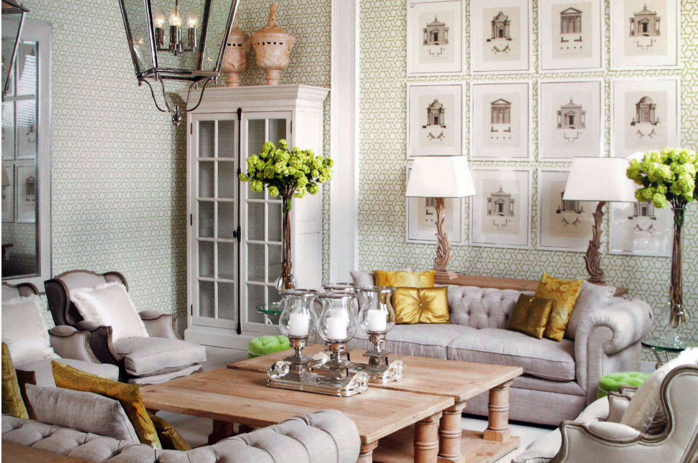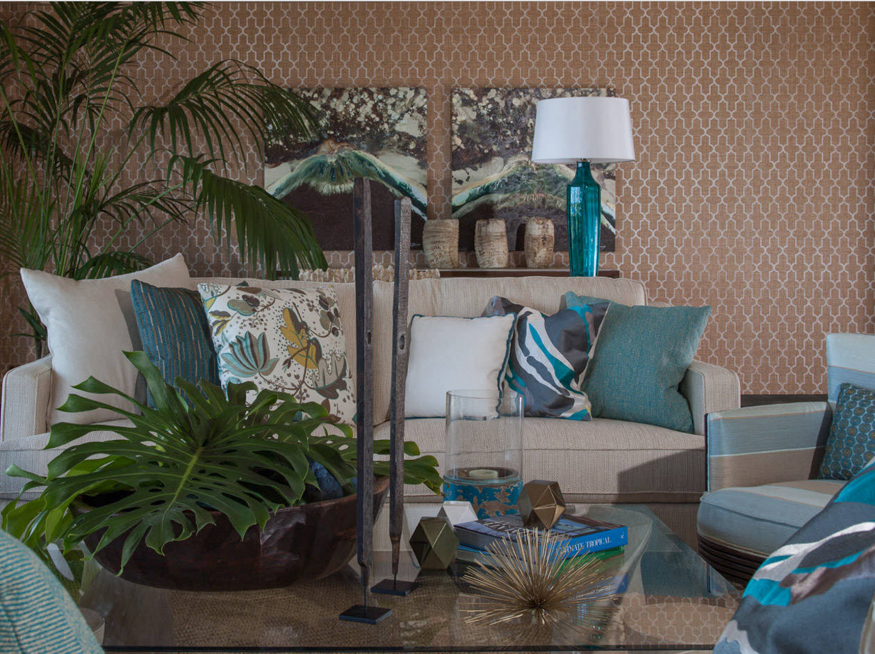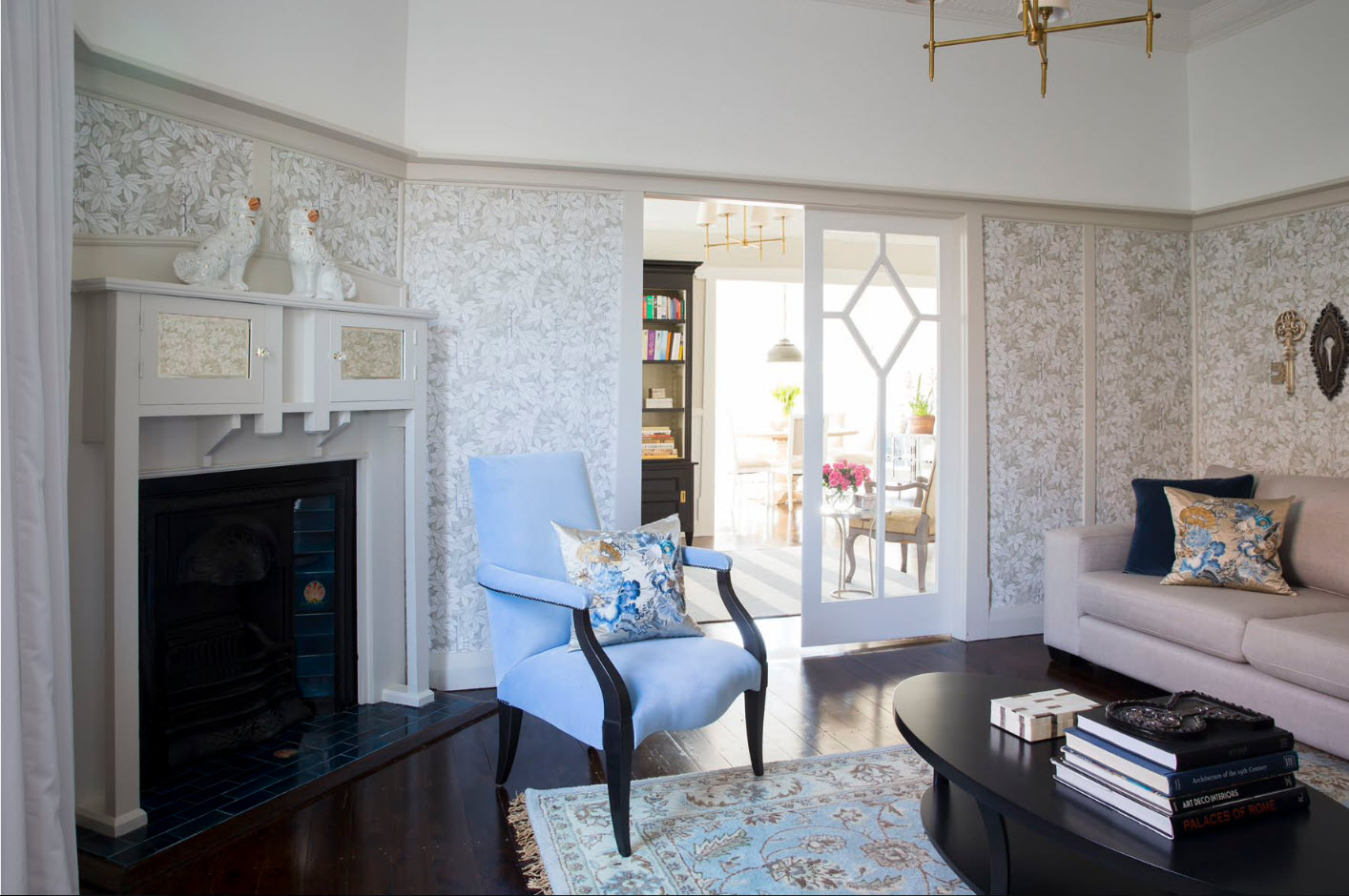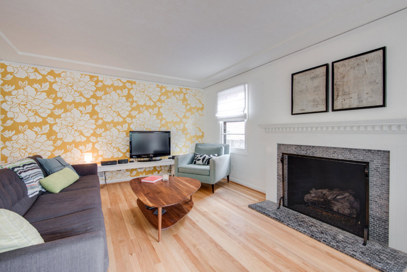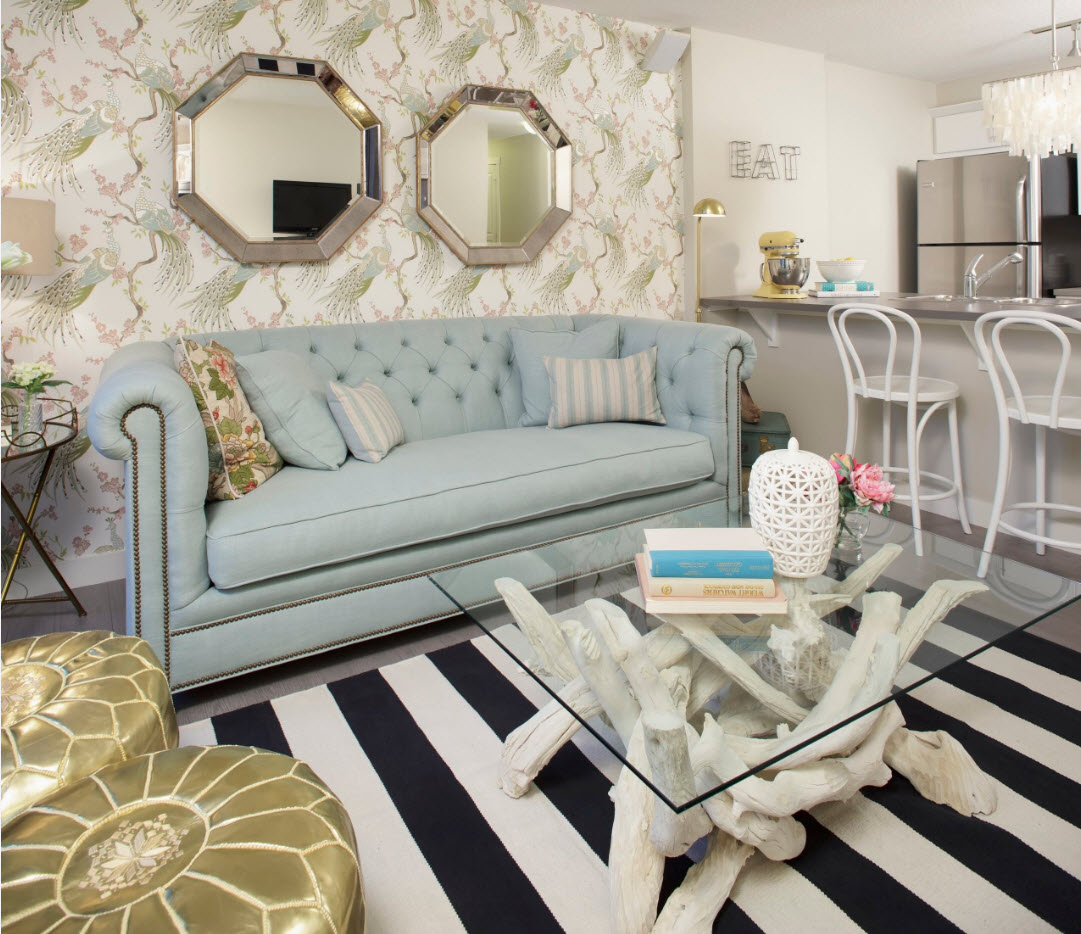 Beautiful wallpaper can be used to highlight the accent wall of the living room