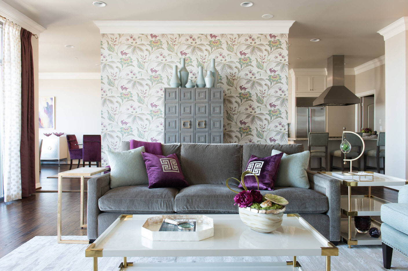 Plain gray wallpapers are great for creating a neutral background, on which furniture and decorative elements stand out