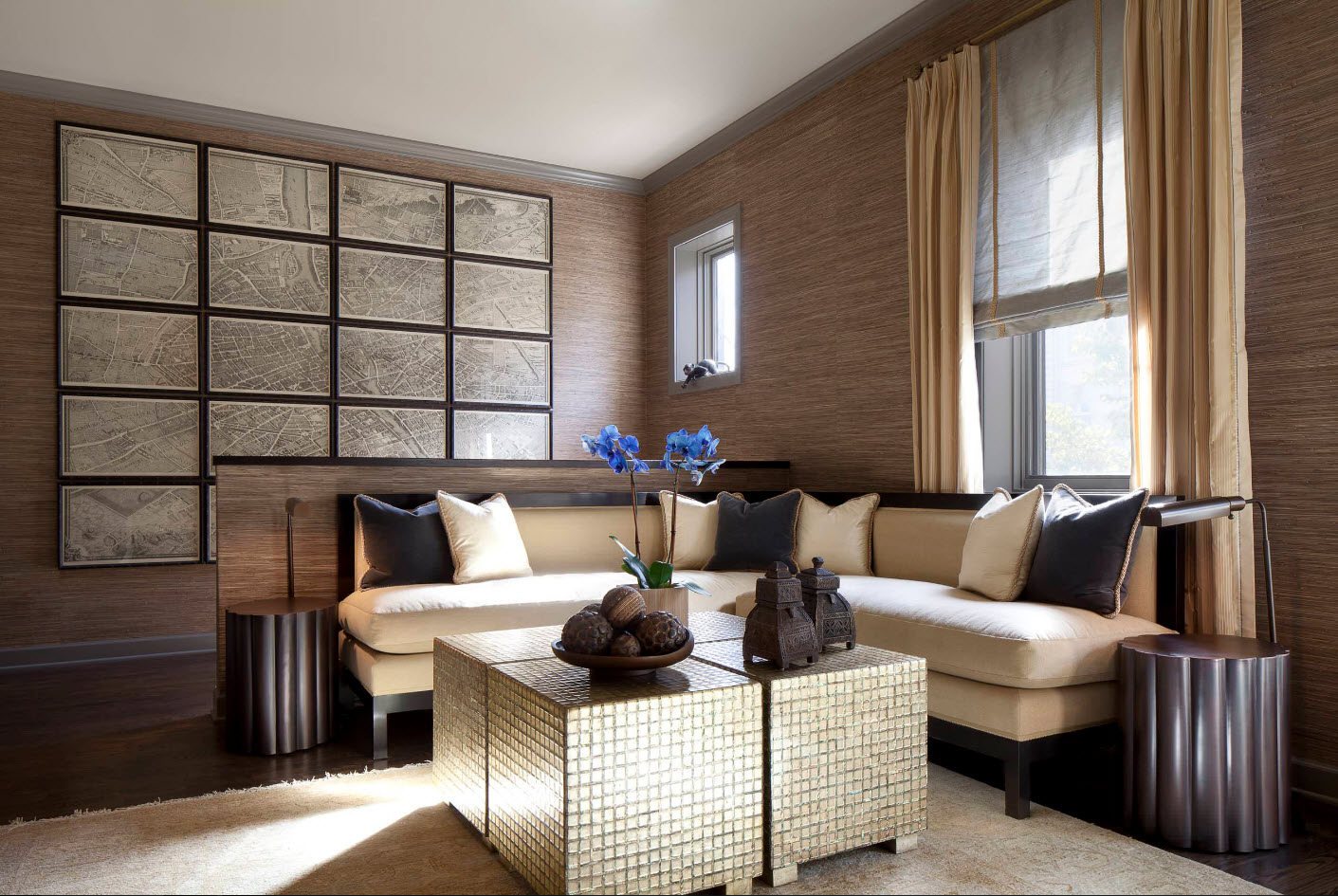 Coffee wallpapers combine well with brown curtains and light flooring.
