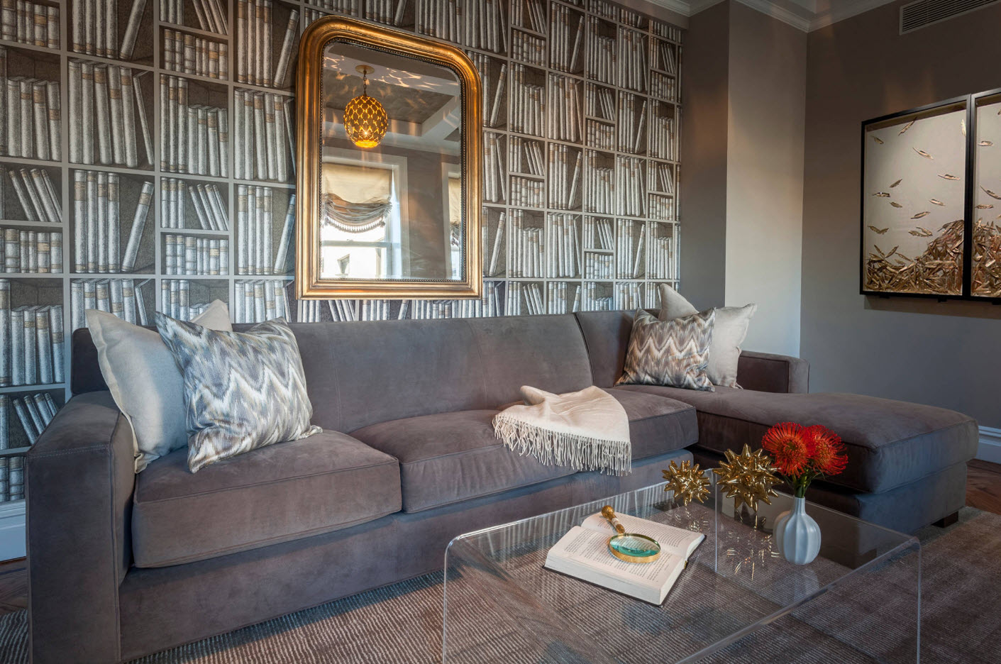 The metallic sheen on the wallpaper can radically transform the interior of the room