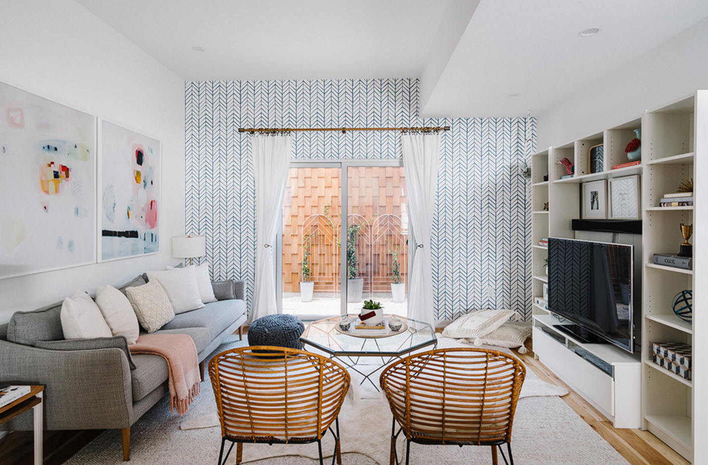 For a Scandinavian interior, wallpaper for painting or canvas with a discreet pattern is suitable