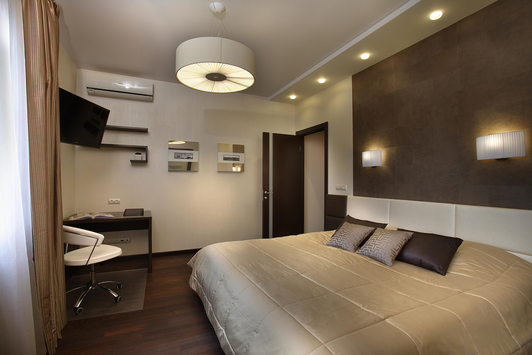 - The base light should not be cold and bright, as the bedroom is a resting place. It uses chandeliers with upward shades or opaque lampshades of ceiling lights. The ideal option is to adjust the intensity of the main lighting.