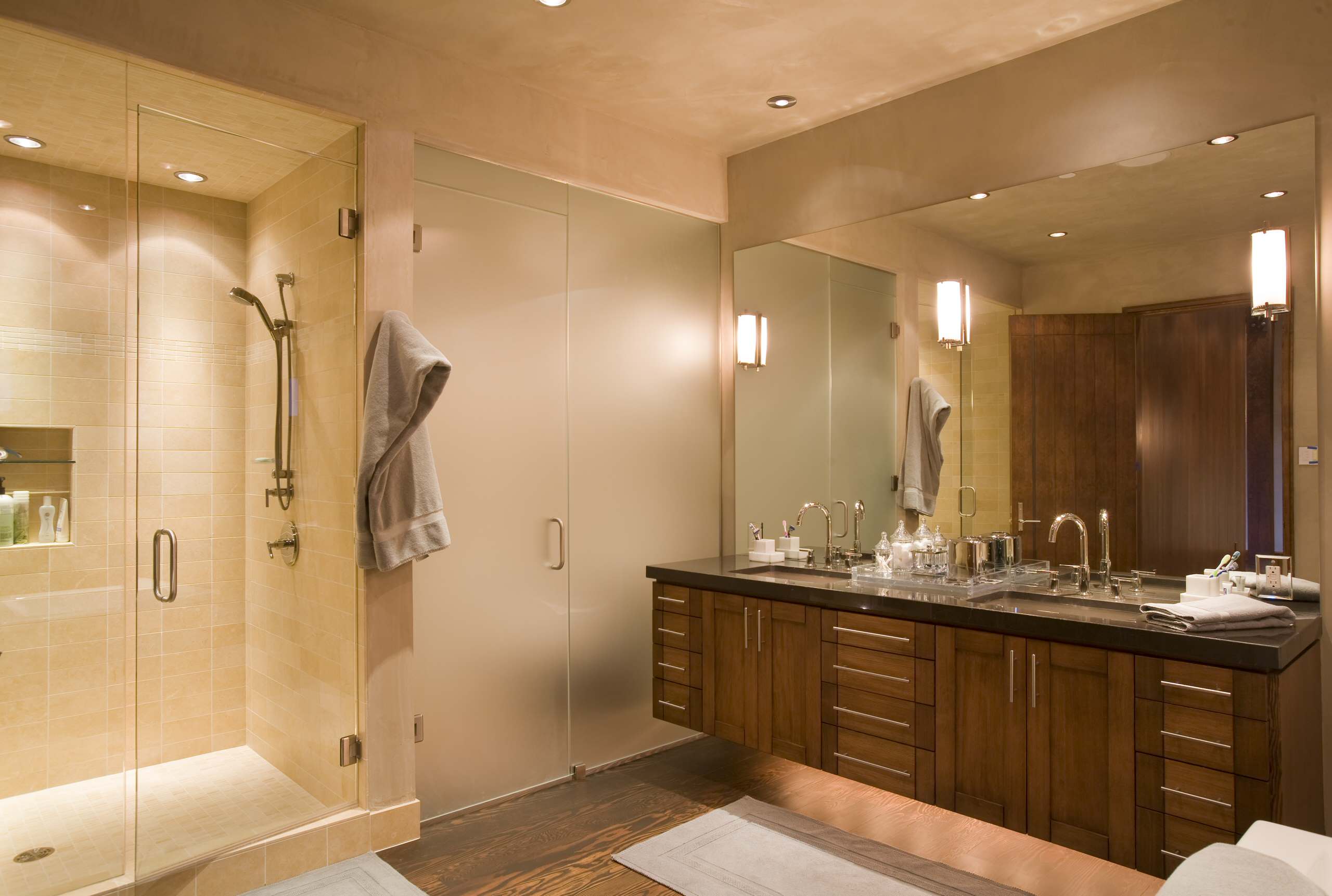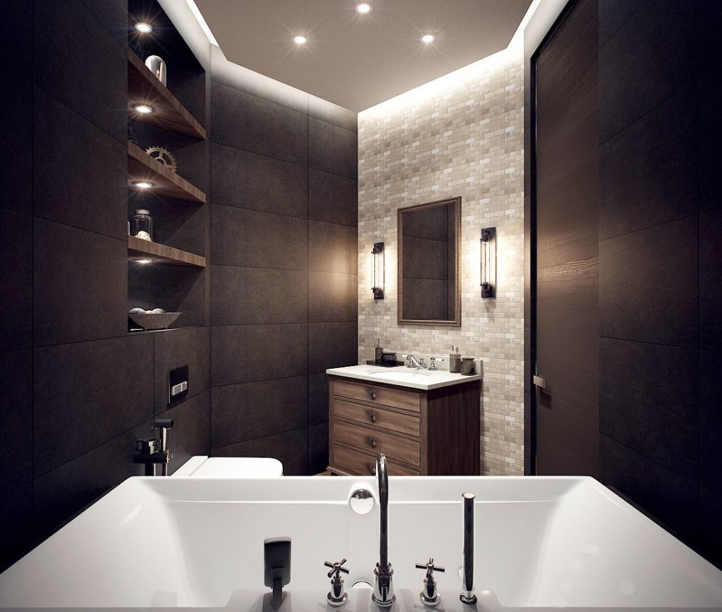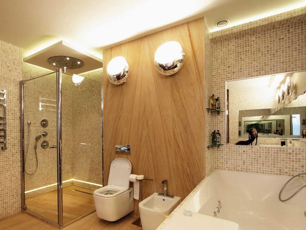 The main thing here is the moisture resistance of light sources. Built-in ceiling spots showed their best performance, preferably with daylight. When organizing local lighting (near the washbasin or mirror), do not direct the rays from above. The best option is side lights on both sides.