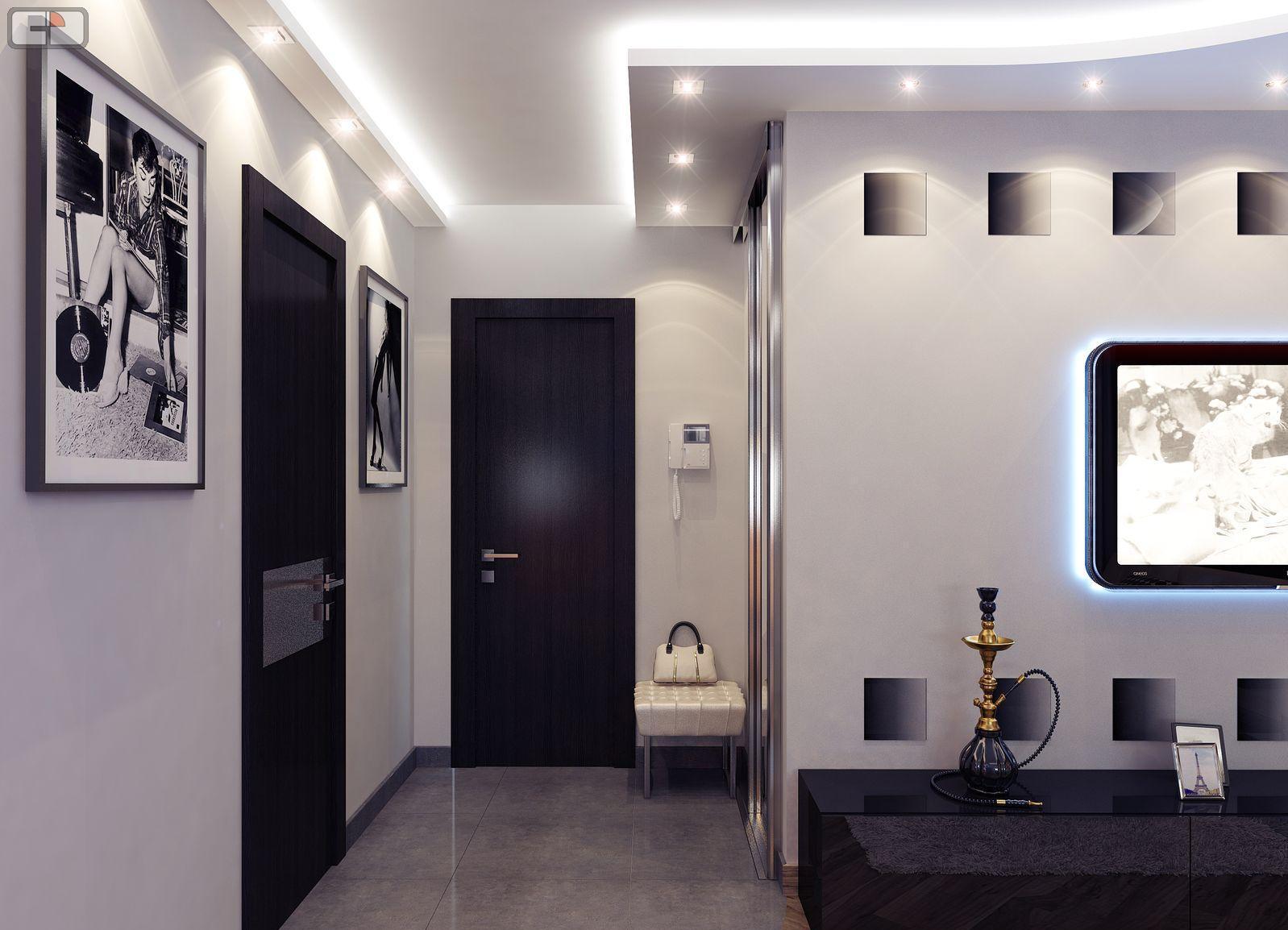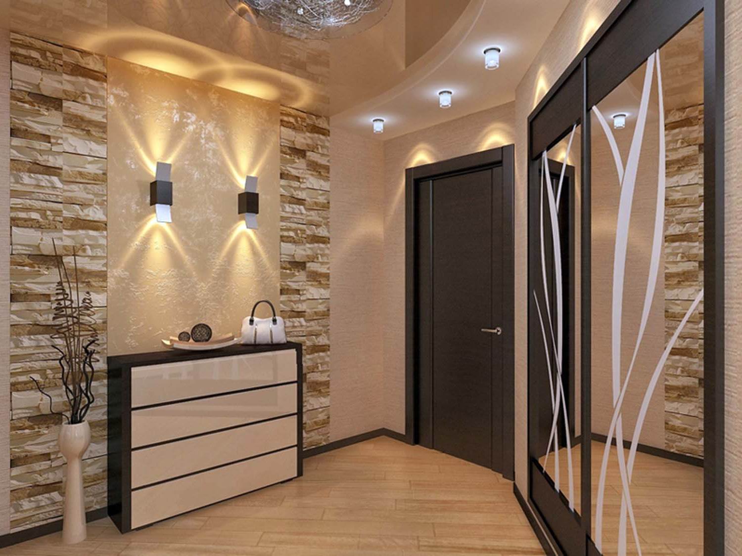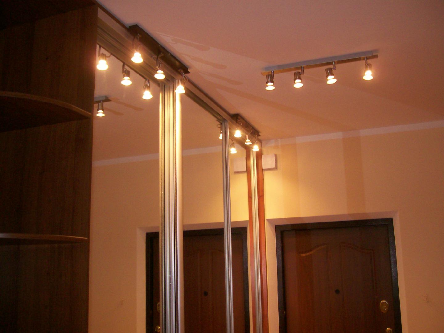 The entrance hall is usually devoid of natural light. Therefore, the artificial should be the brightest in the apartment. For a visual increase in space, wall spots are used, aimed at the top of the wall.