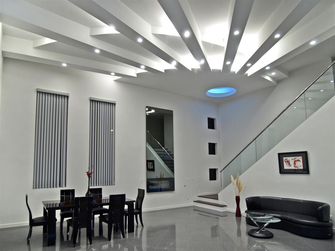 The lights built into suspended ceilings or into suspended structures made of drywall look very nice.