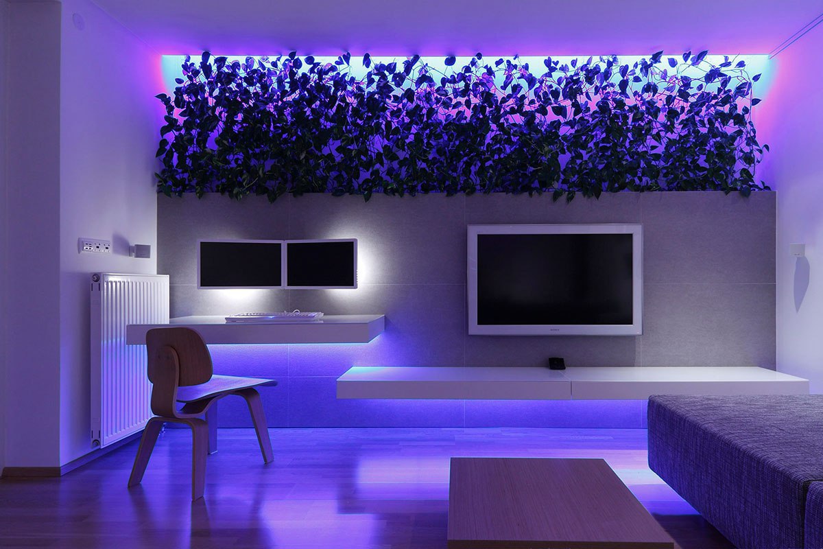 LED strips and cords are used for local lighting and decorative lighting. Night illumination in the apartment can be made of LED strips on the floor, ceiling or walls. The disadvantage of such a backlight is the lack of the ability to adjust brightness.