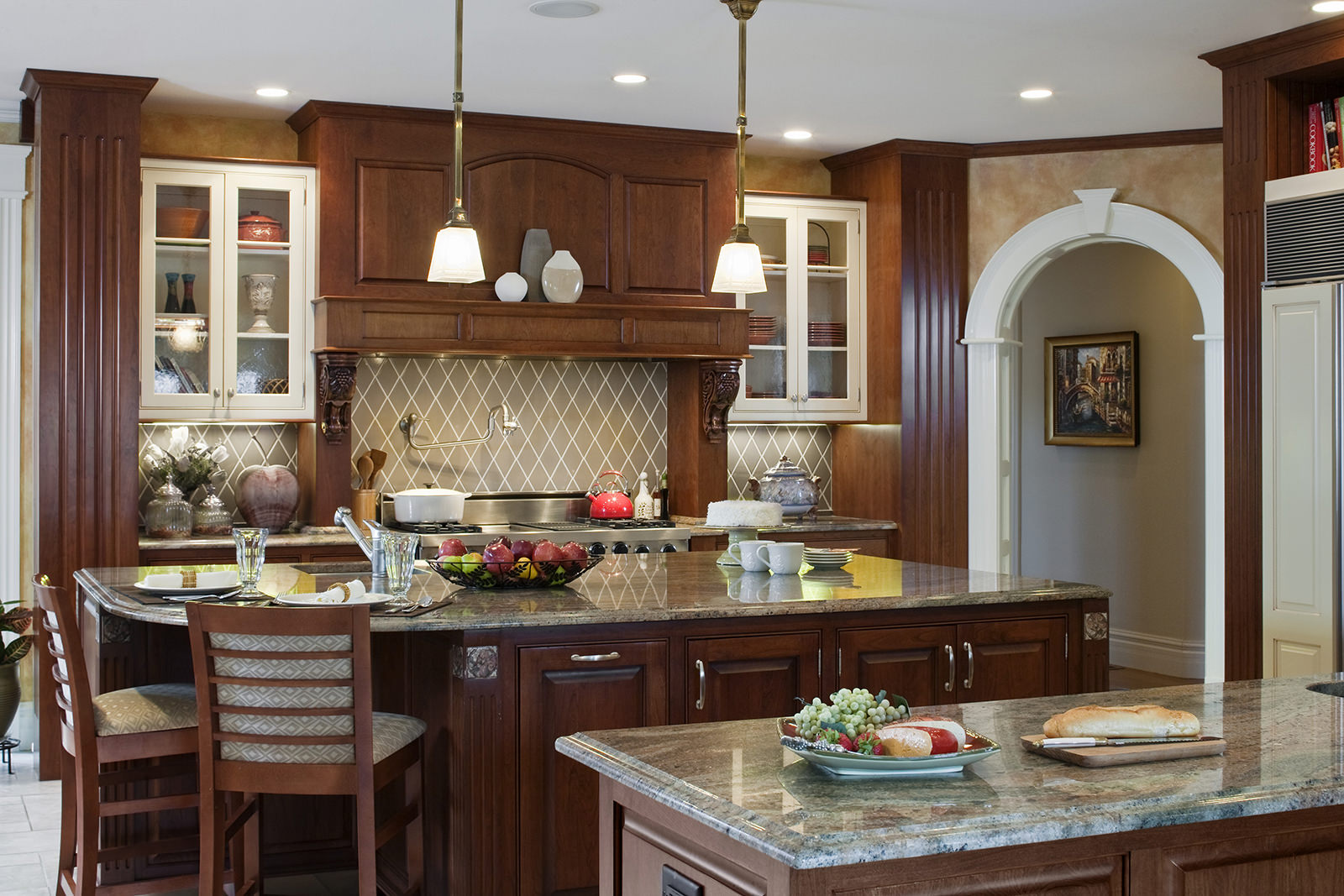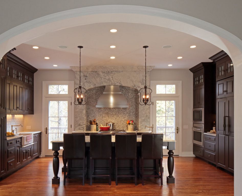 In large rooms, arches can help solve the zoning problem.