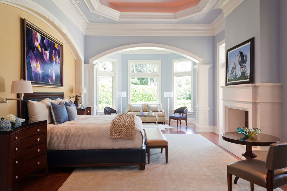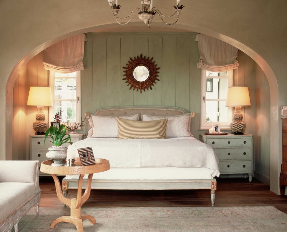 If the room is large enough, you can make a dressing room, but instead of installing doors, create a beautiful arch. If you do not want or do not have the opportunity to divide the bedroom into two zones, then think about the arch-alcove. This is not a doorway, but rather a built-in closet with small niches. In this way, you can focus on the bed, and put candles in small niche shelves to create a romantic atmosphere.