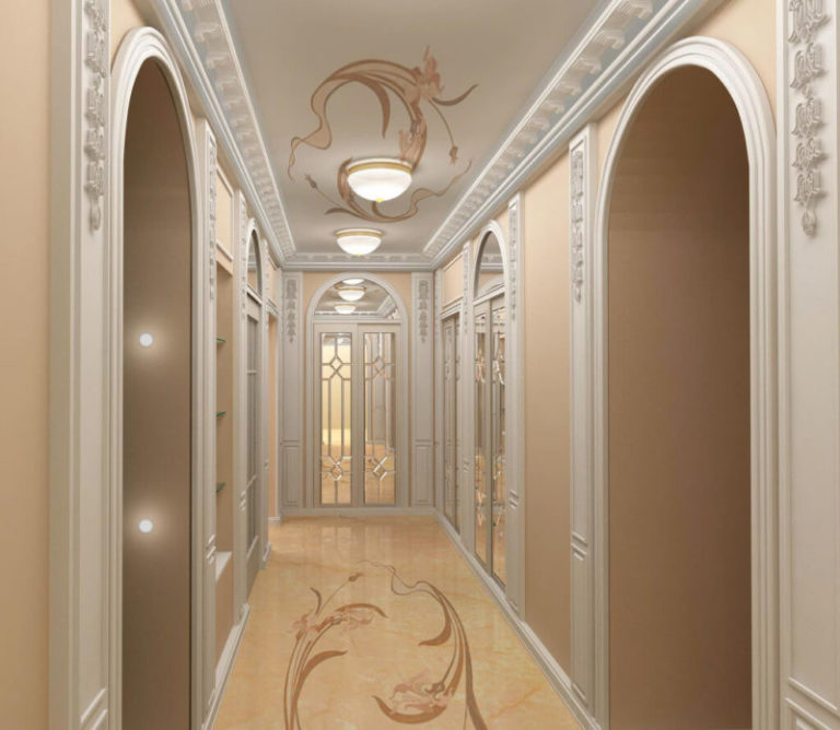 Stucco molding allows a flight of fantasy to turn into a work of art. However, only if you can create shapes from drywall. Of course, you can order stucco molding or buy a finished one, and then stick it in the right places. More often this approach is used to frame classic arches in the Roman or Greek style. Often the decor is distinguished by another paint to emphasize the beauty of the product.