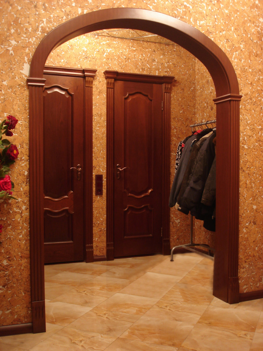 - From wood or MDF - everything here already depends not on the repairmen or builders, but on the door manufacturer. The client orders a wooden doorway, the specialist takes measurements, the customer chooses a design, after a while the company employees come and install the frame in the doorway.Such a product stands out against the background of the wall, like a frame from a door.