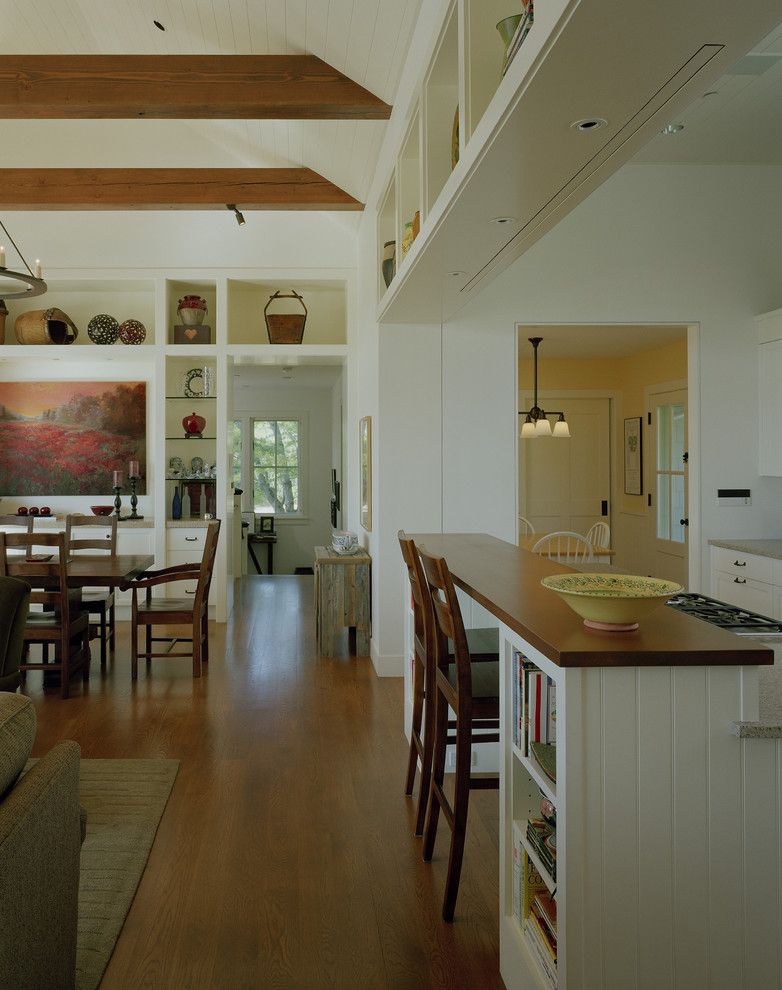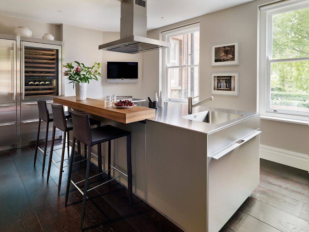 It is placed next to other furniture elements. The height of this design should correspond to the height of the adjacent furniture. Some options combine with a dining table.