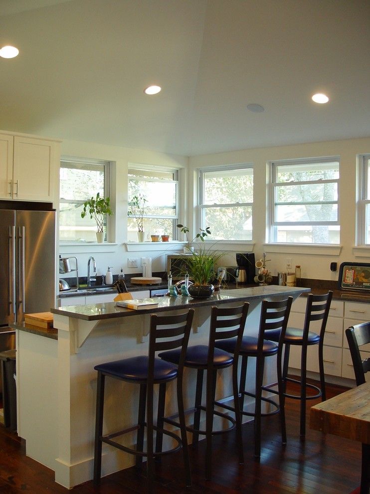 Important! If the room has a free wall, then it can be used to place a bar. For example, it looks beneficial if you move the countertop closer to the wall.