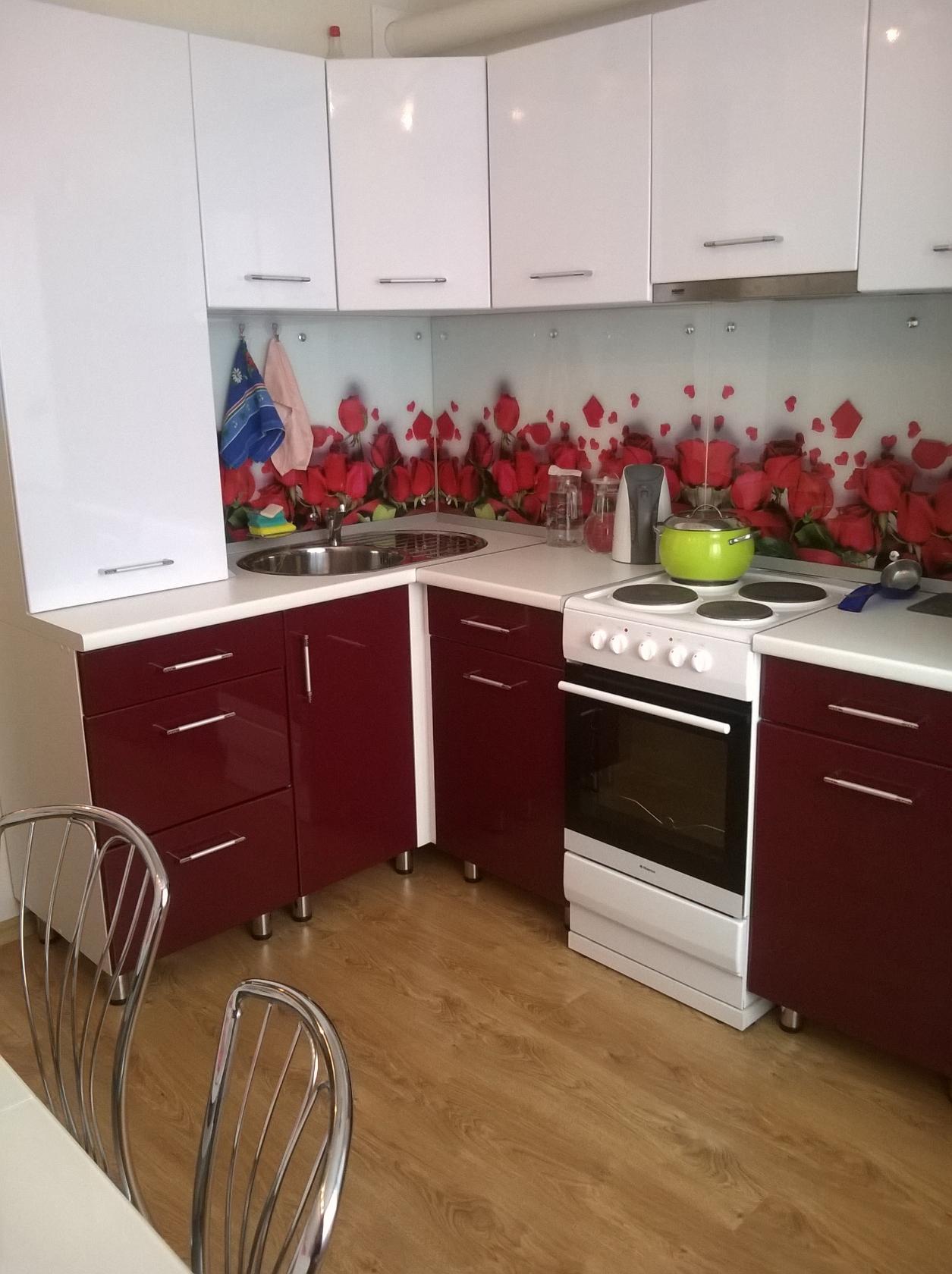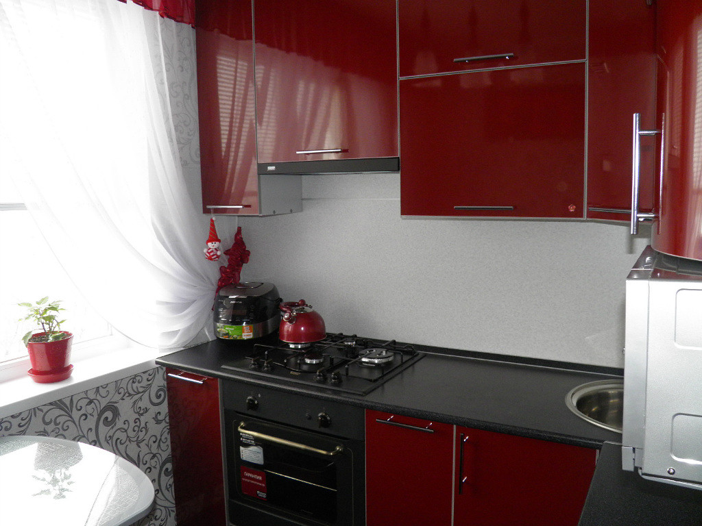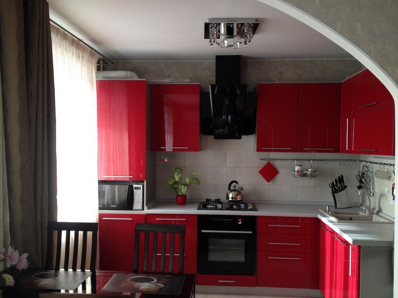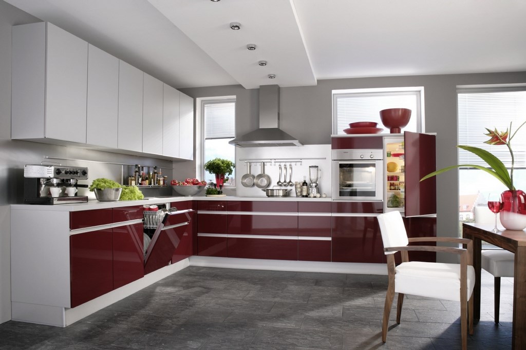 - Acrylic kitchen with a glossy surface will give Art Nouveau, high-tech style a special chic. The combination of luxury burgundy and chrome always looks advantageous and rich.