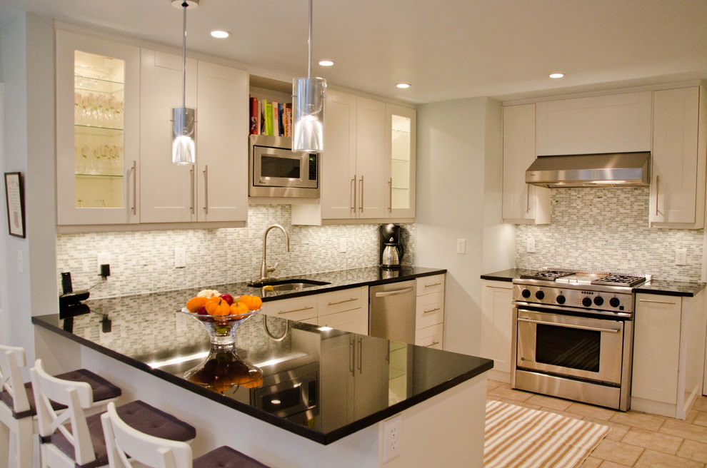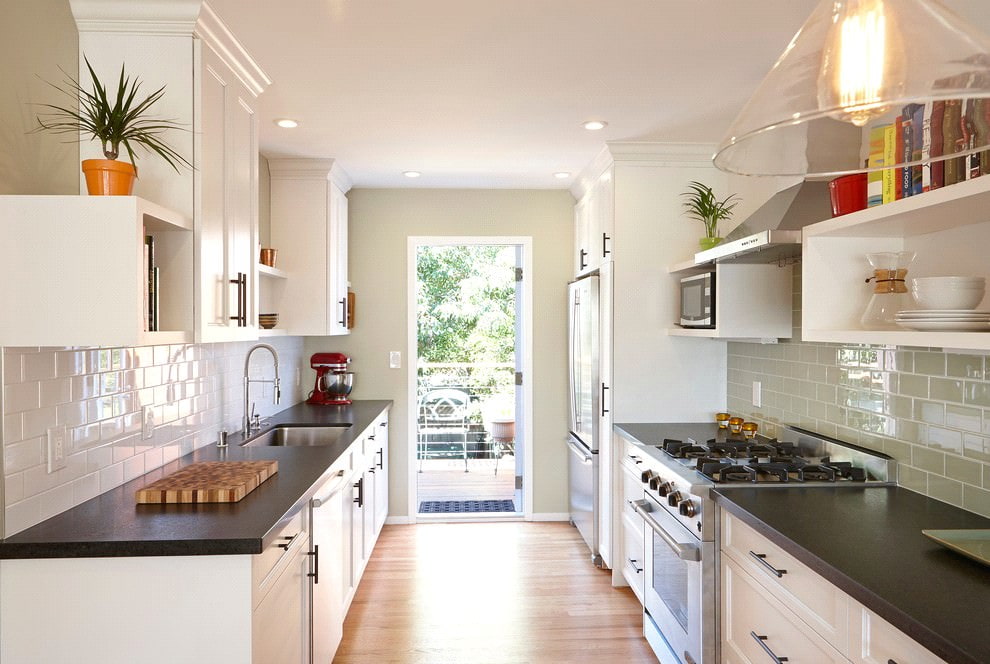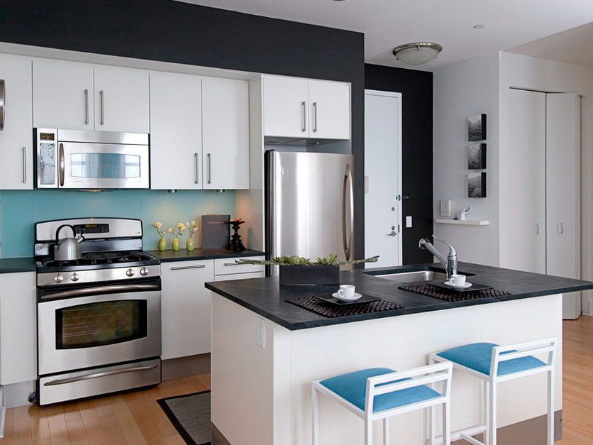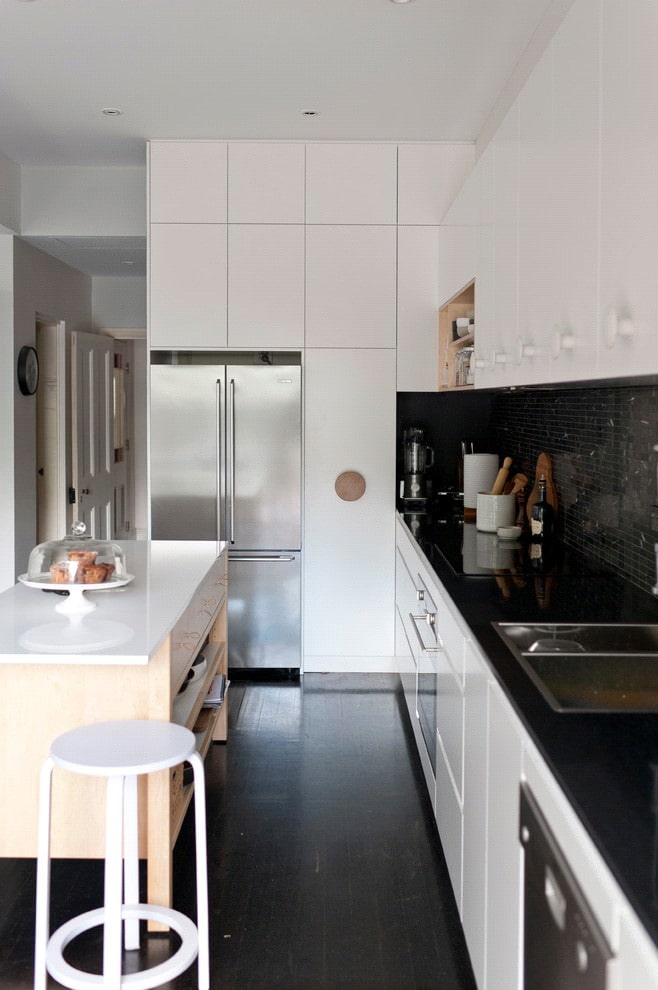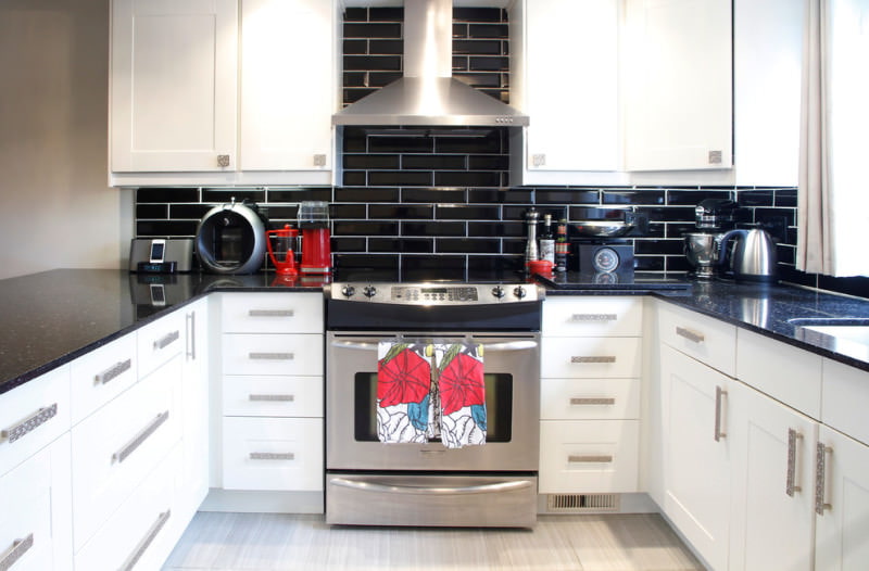 A good black to white ratio helps visually increase the space in a small kitchen