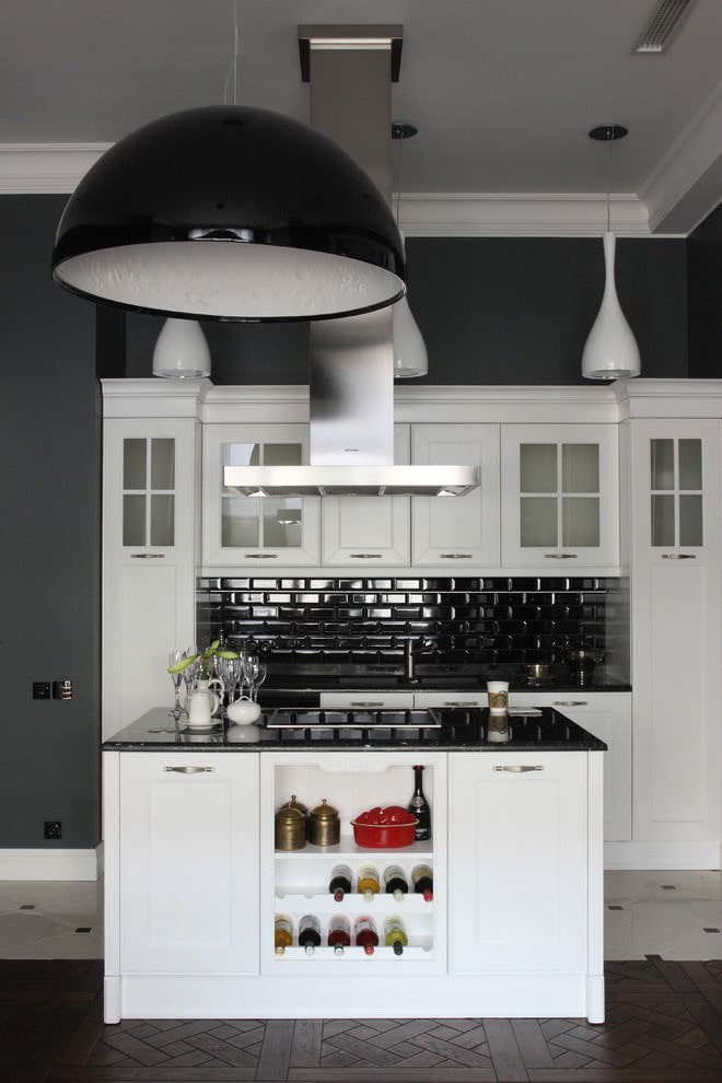 The third color in the design of black and white kitchen