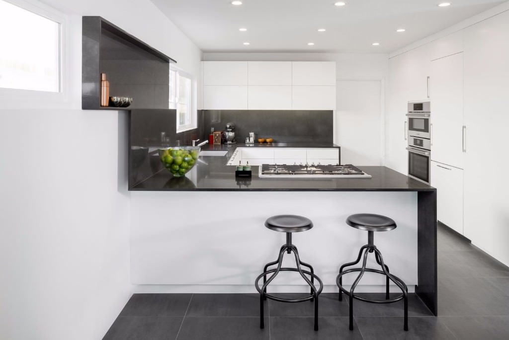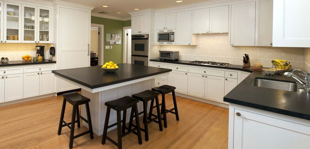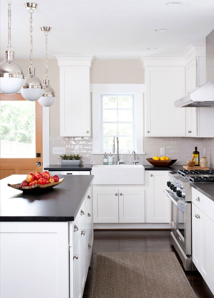 Pros and cons of a white kitchen with a black countertop