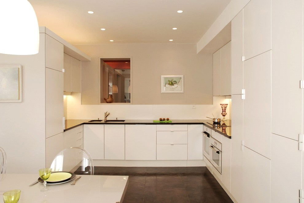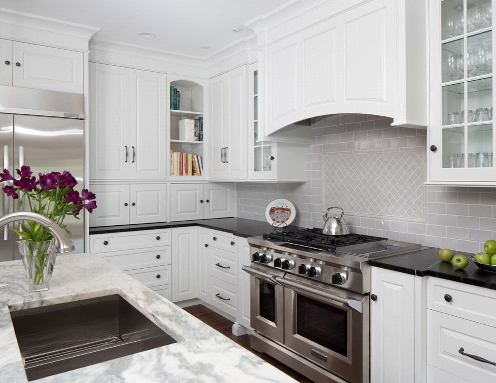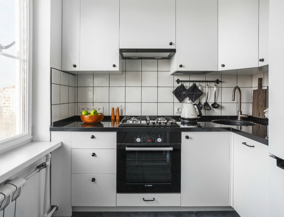 - Too much contrast. The combination of a classic white kitchen set with a black countertop will not appeal to everyone. The selected colors are very contrasting. Therefore, you should carefully weigh all the options, choosing between a spectacular and homely simple design.