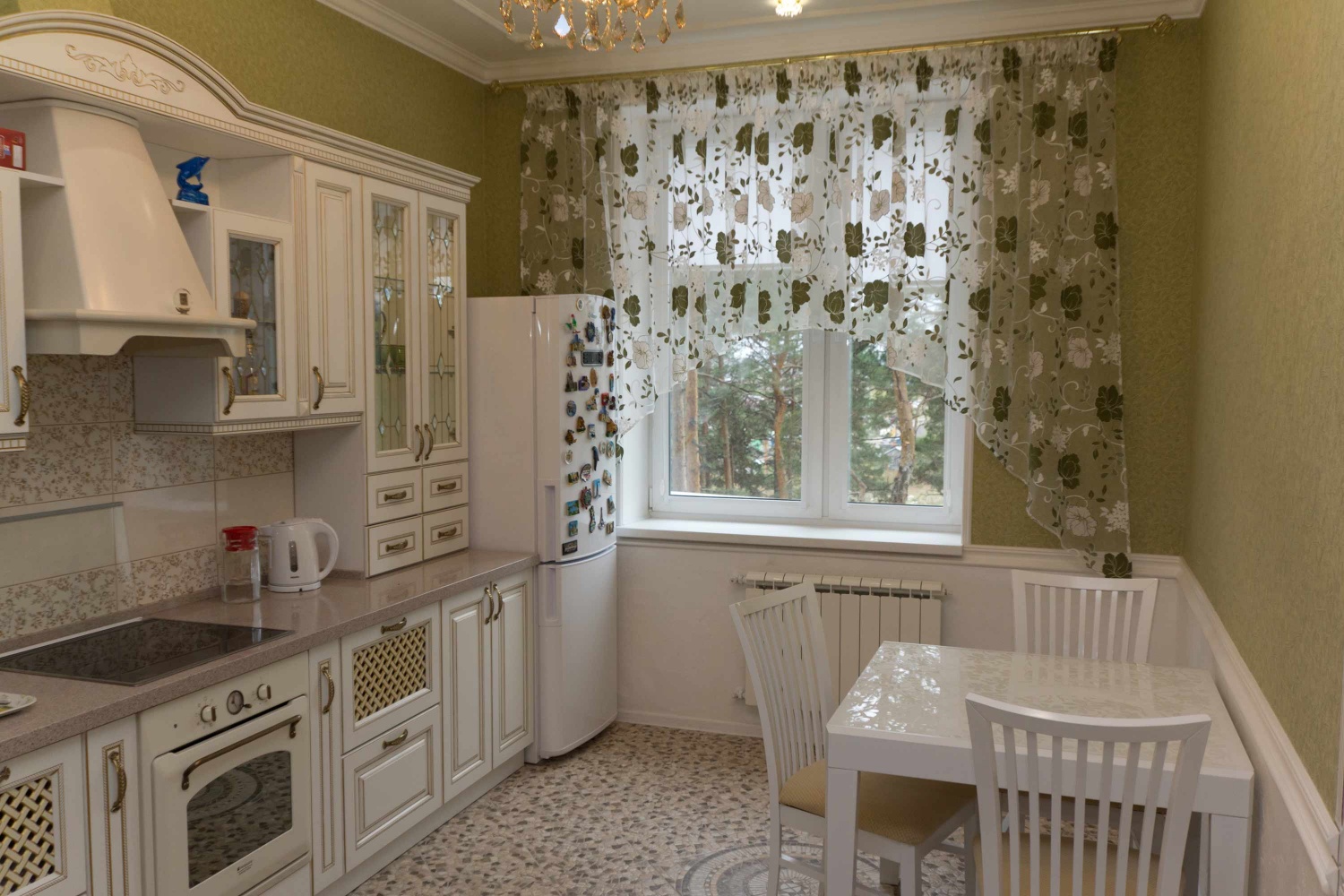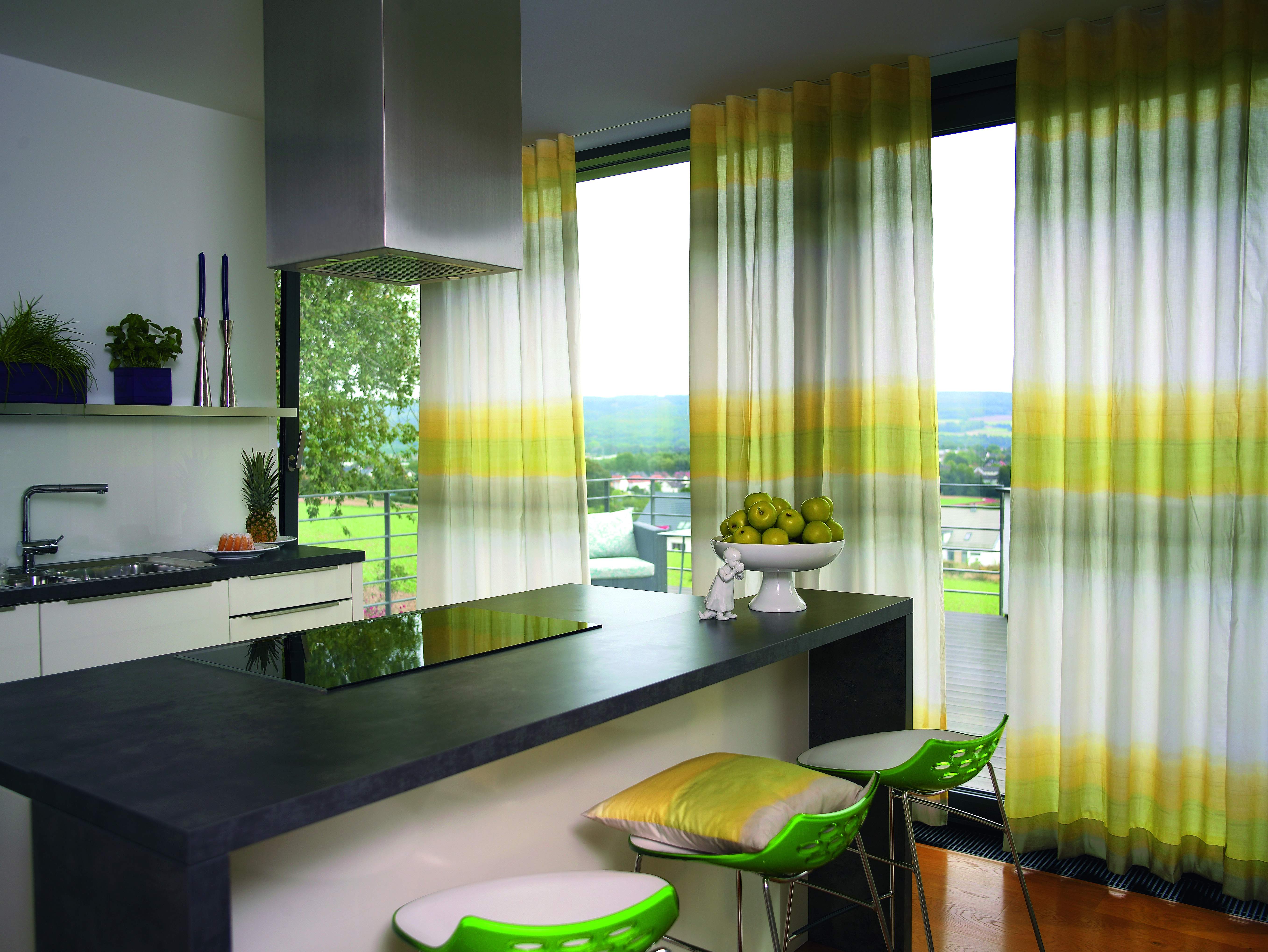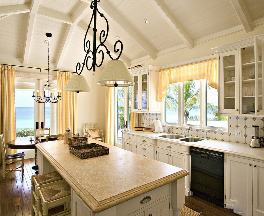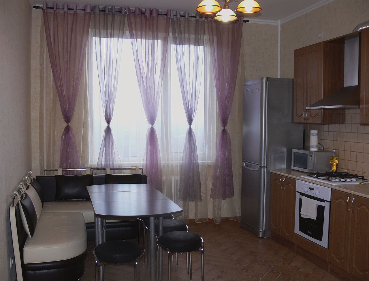 Long curtains will be very useful in the dining area of the kitchen