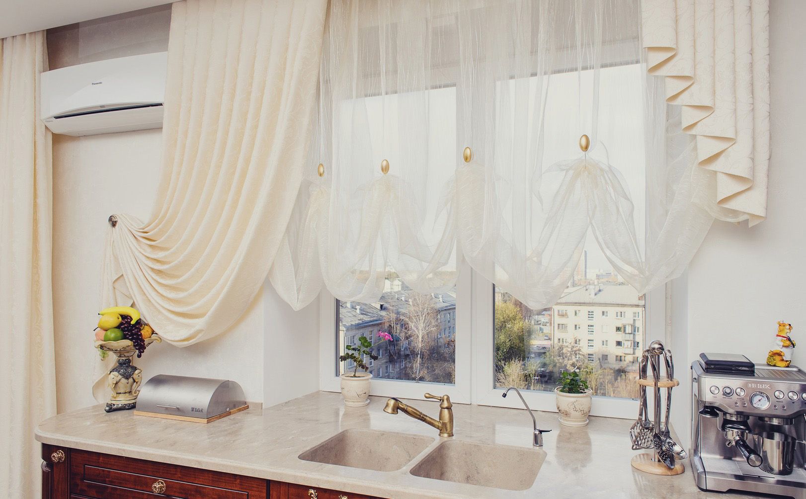 Kitchen curtains to window sill
