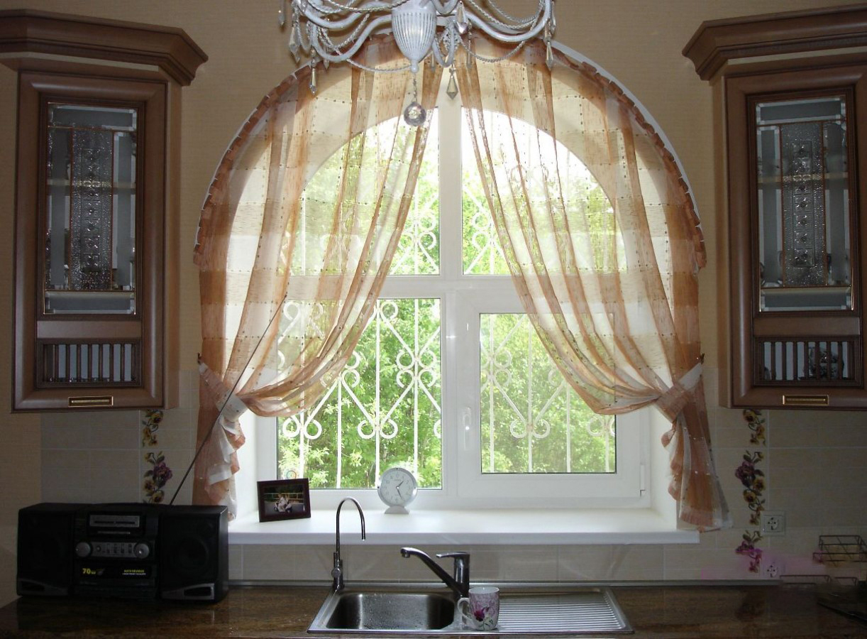 - short tulle curtains to the windowsill;