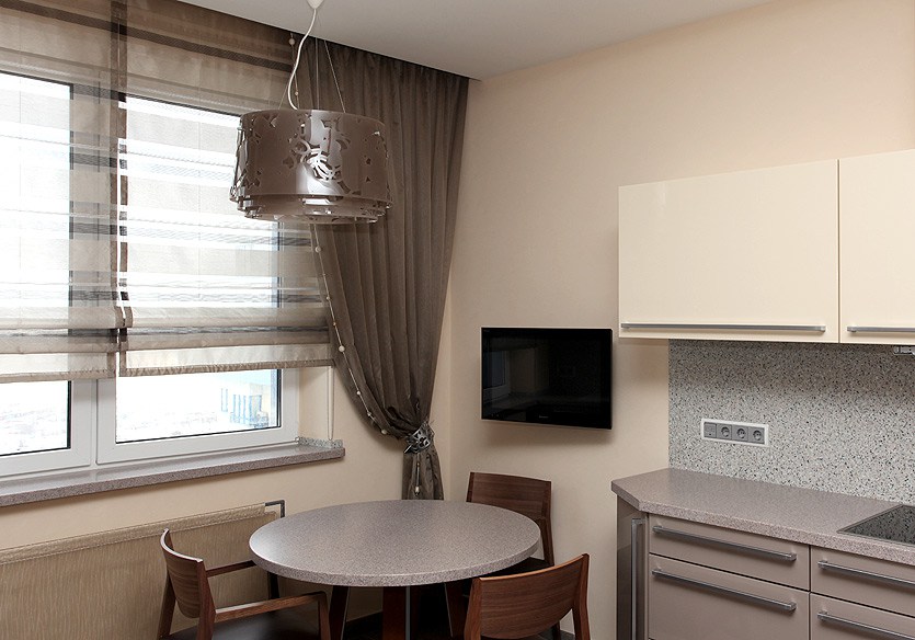 We offer simple ideas for the modern design of curtains for the kitchen:
