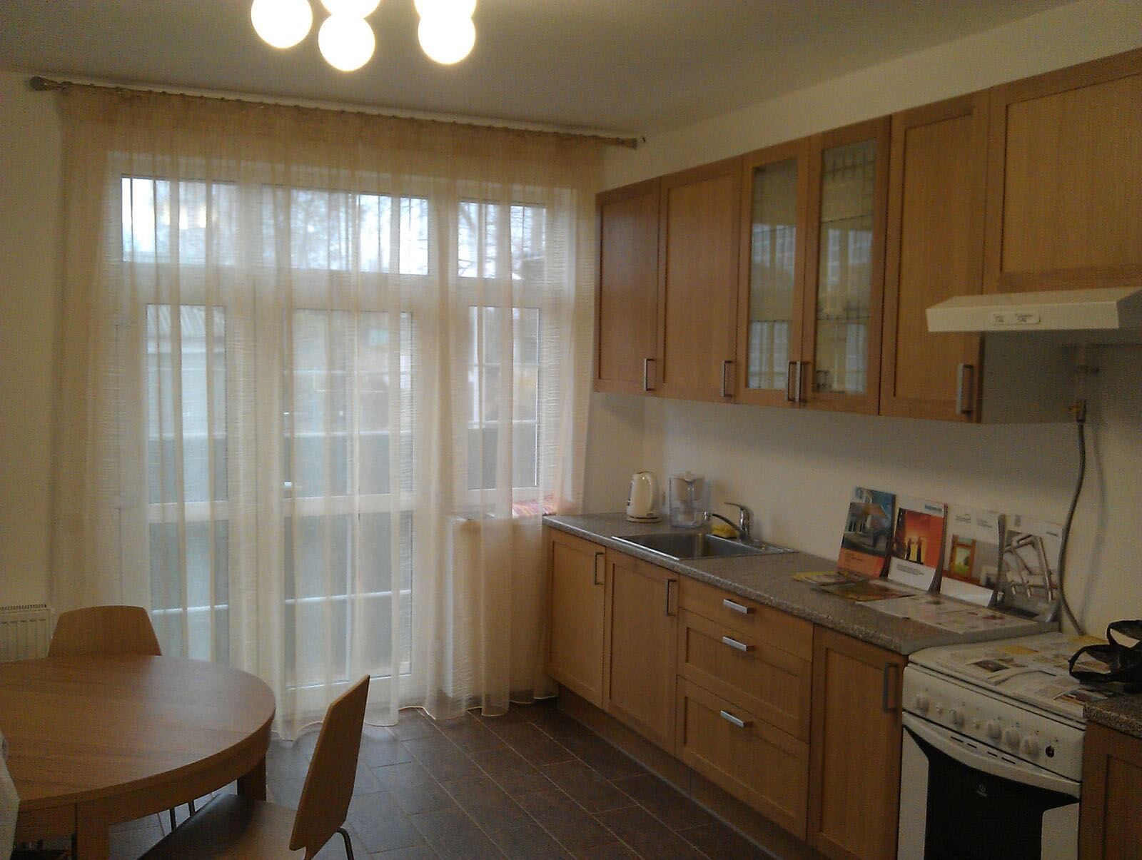 - Straight curtains from tulle - timeless classic. They look elegant and elegant in any kitchen design.