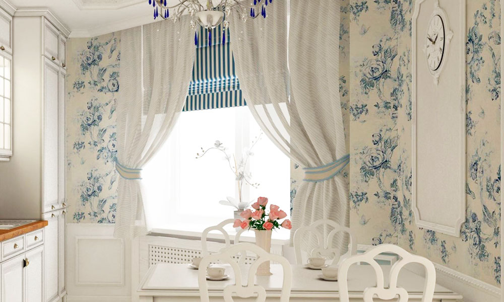 The color of the kitchen curtains should match the chosen style.