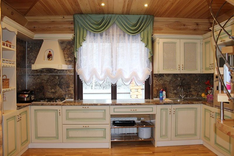 Lambrequins are no longer in fashion. And why are they in the kitchen, where we fry, steam. Constantly greasy fumes come from cooking.