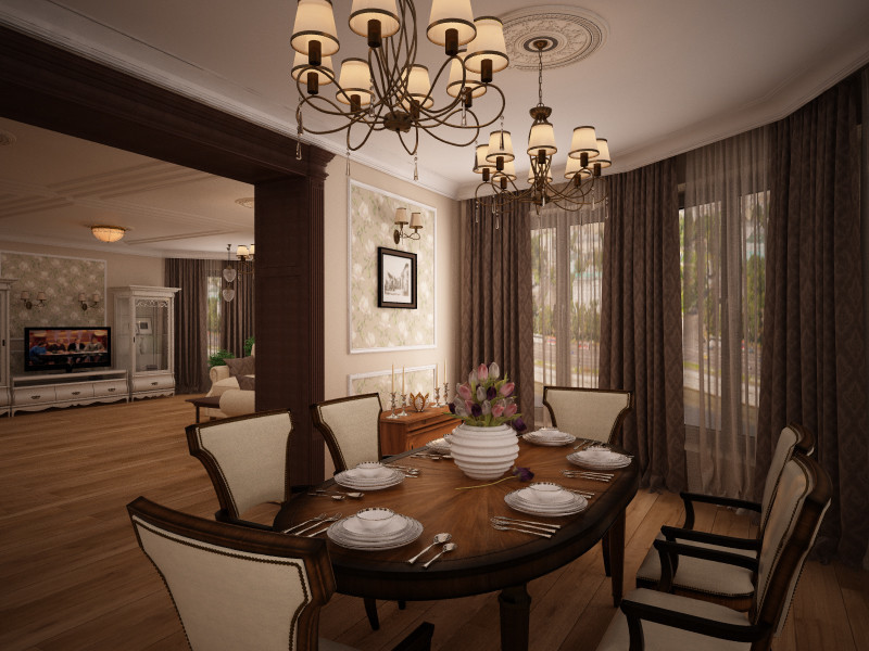 In the classic interior, each item is in its place, and in general, the design looks like a single complete ensemble