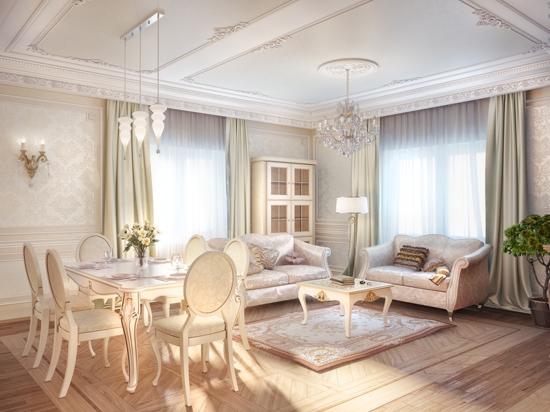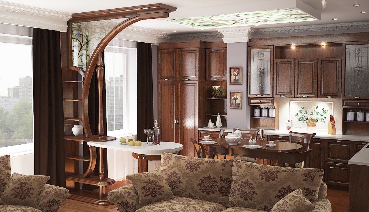 Advantages and disadvantages of the modern classic style in the kitchen-living room