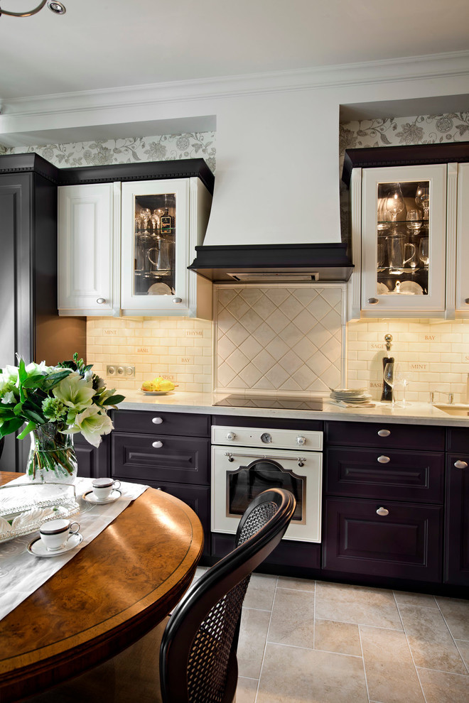 An apron for a kitchen in the style of a classic should become a bright spot on the general background. Tiles, mosaics or skins - all this is the true embodiment of the classic style and will become the decoration of the Kitchen.