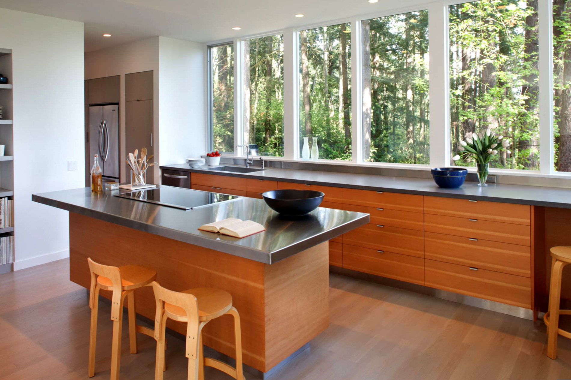 Placing a window opening in the dining space is the best option for the kitchen, where the dining room predominates, not the work area.